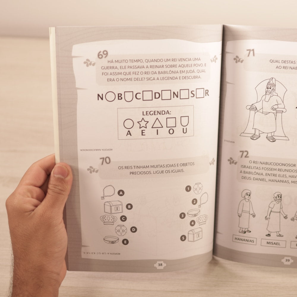Descubra grandes personagens e histórias da Bíblia de uma forma divertida e simples: brincando! Este livro oferece 180 atividades envolventes, como colorir, desenhar, resolver labirintos, ligar pontos e muito mais. Prepare-se para aprender e se divertir enquanto explora as lições da Bíblia!