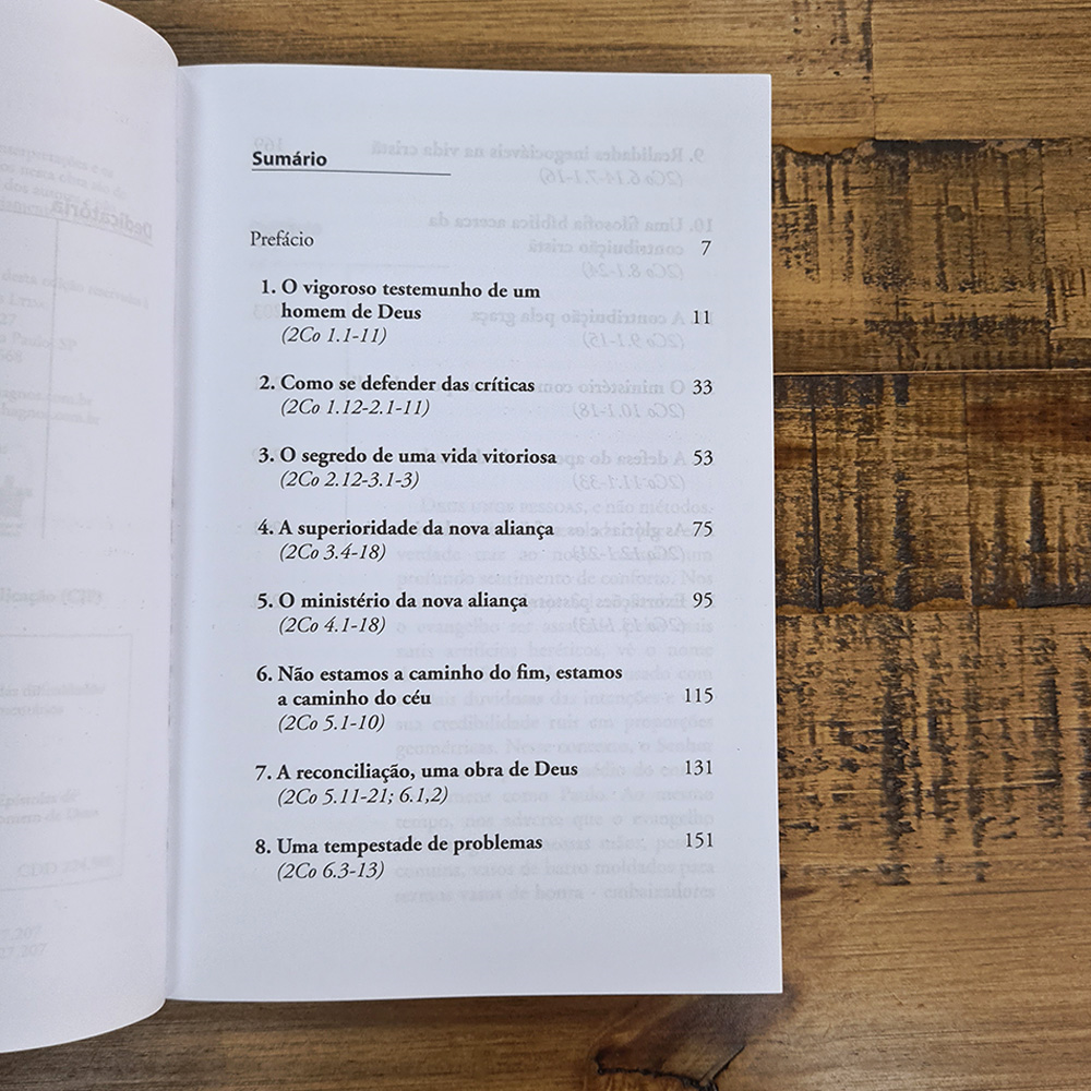 Em segunda aos coríntios Hernandes Dias Lopes nos mostra as aflições do apóstolo Paulo. O apóstolo escreveu esta carta para falar da necessidade da igreja perdoar. Segunda aos corintios nos dá coragem para vencer o desânimo e nos lembra que devemos buscar forças em Cristo. A fonte do consolo é esta gloriosa verdade: ""A minha graça te basta, por que o poder se aperfeiçoa na fraqueza"".