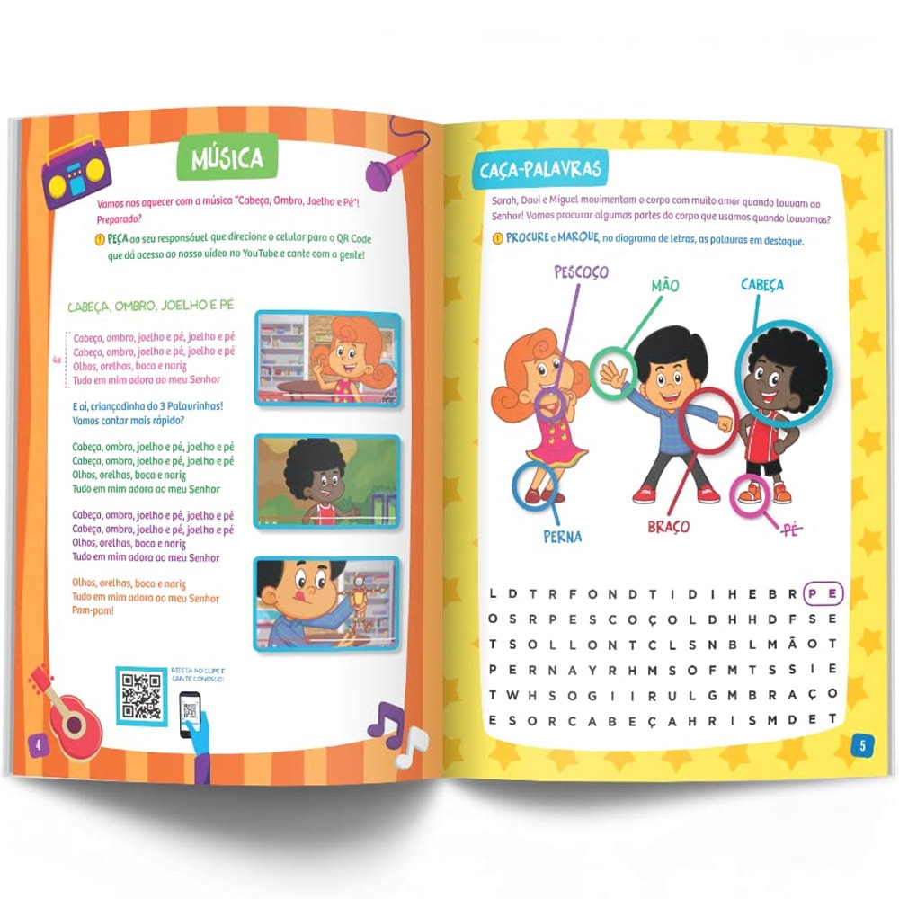 O Superlivro 3 Palavrinhas chegou e está recheado de diversão! E vocês estão convidados a embarcar em uma viagem incrível! O livro traz as músicas do volume 7, além de muitos jogos educativos. Tais como: achei, jogos dos erros, labirintos, caça-palavras, imagens para colorir e muito mais. Venham viajar por lugares incríveis, para a Terra do Amor e da Alegria!