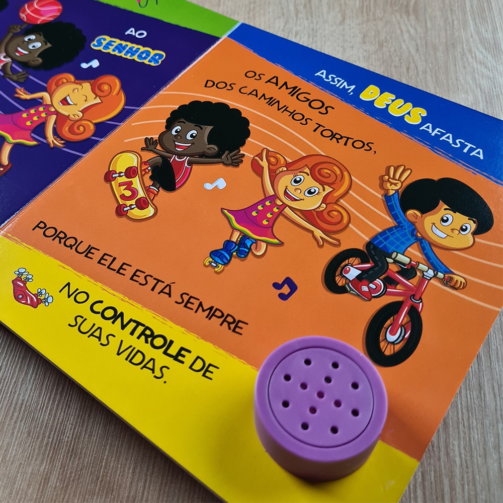 Sarah, Davi e Miguel louvam a Deus por sua vida, não importa a hora ou o dia. Venha se divertir com o trio, lendo as páginas deste livro e descobrindo os sons de cada uma delas.