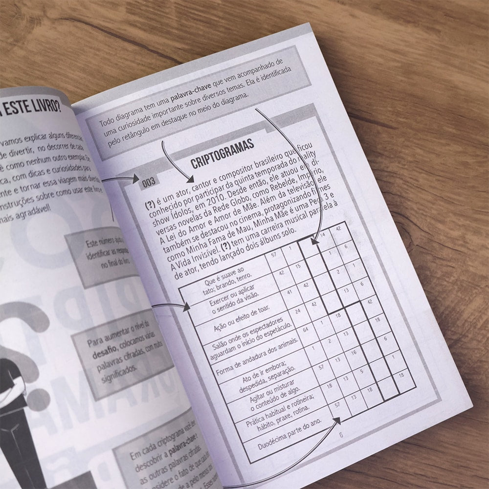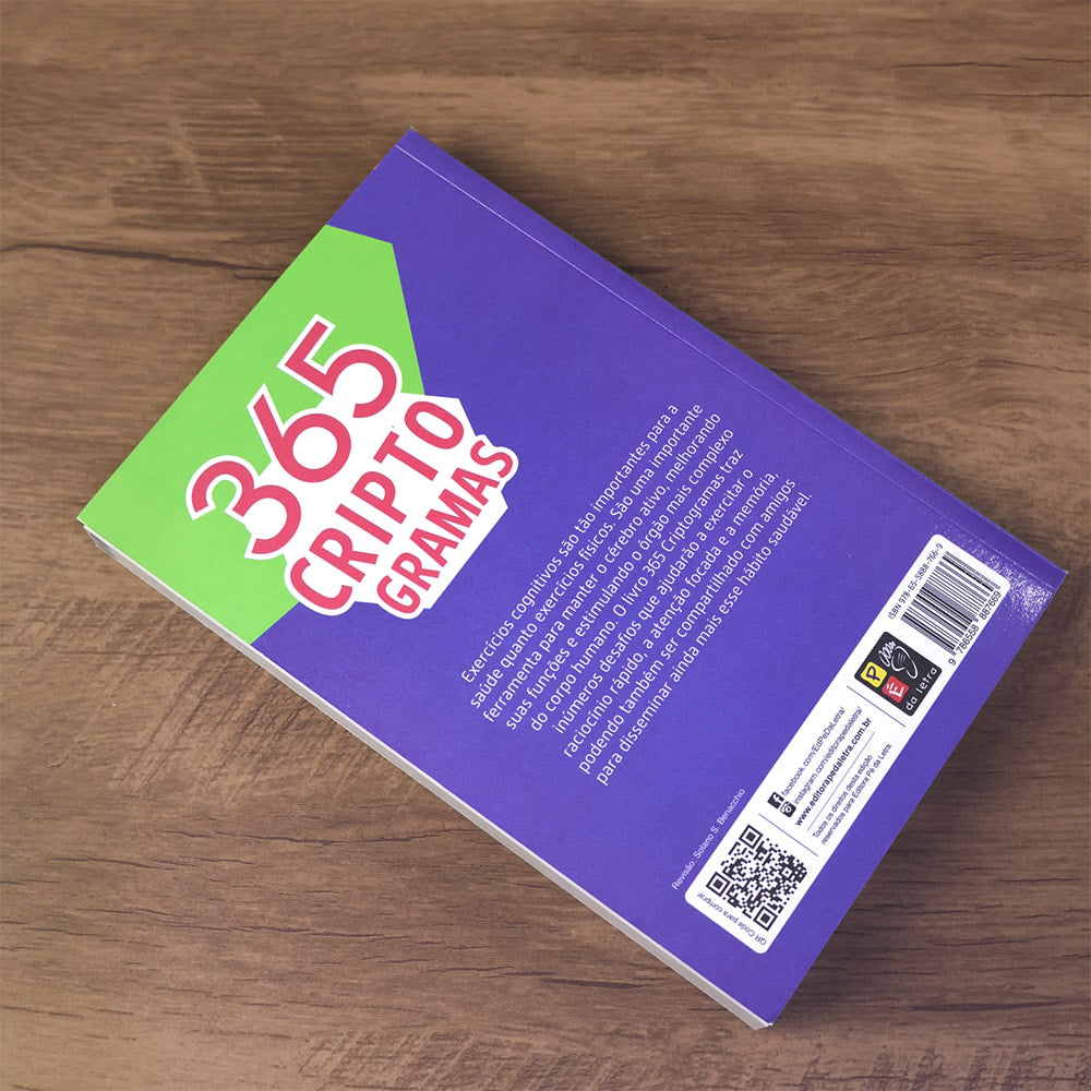 O livro 365 Criptogramas traz inúmeros desafios que ajudarão a exercitar o raciocínio rápido, a atenção focada e a memória, podendo também ser compartilhado com amigos para disseminar ainda mais esse hábito saudável.
