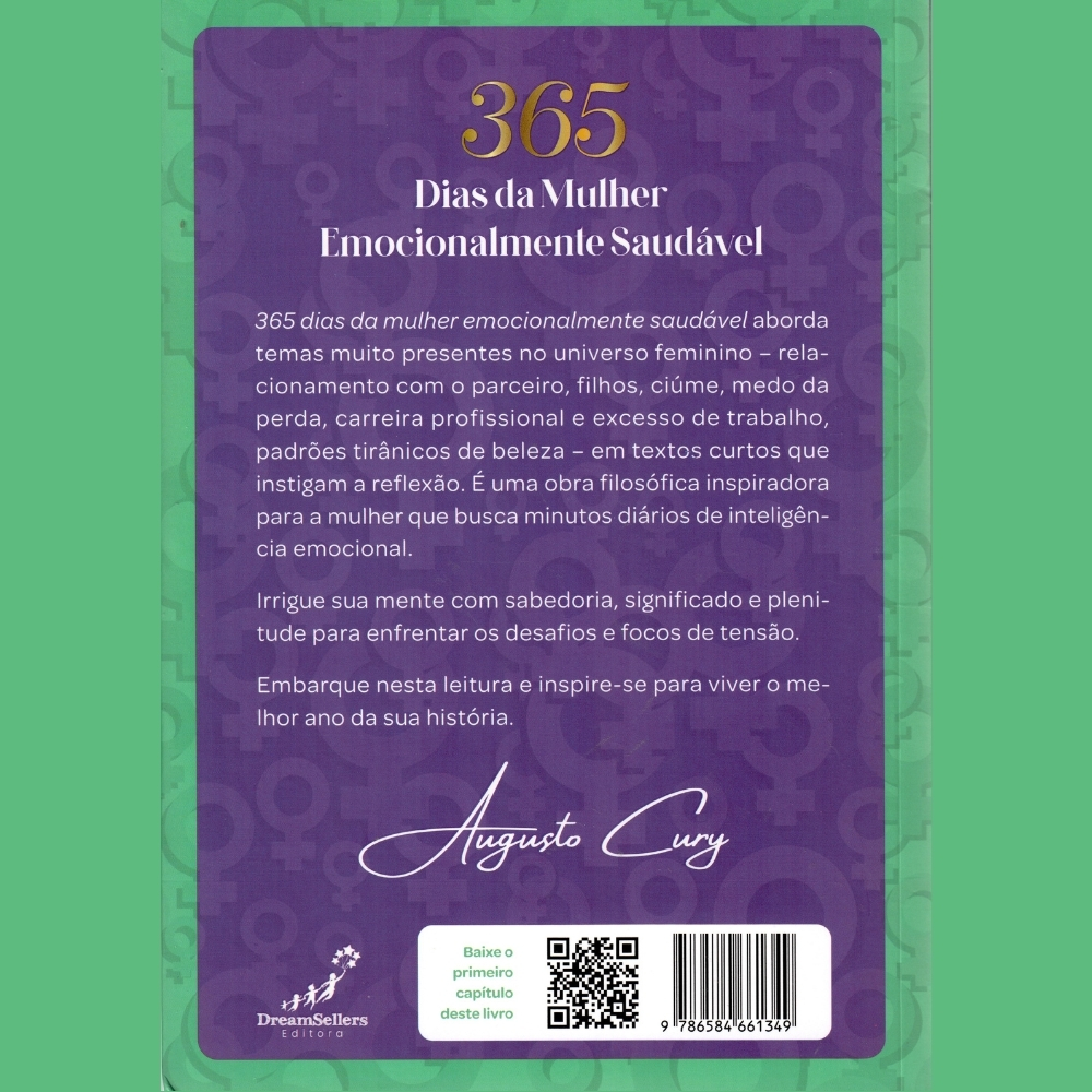 365 Dias da Mulher Emocionalmente Saudável" aborda temas muito presentes no universo feminino - relacionamento com o parceiro, filhos, ciúme, medo da perda, carreira profissional e excesso de trabalho, padrões tirânicos de beleza - em textos curtos que instigam a reflexão. É uma obra filosófica inspiradora para a mulher que busca minutos diários de inteligência emocional.