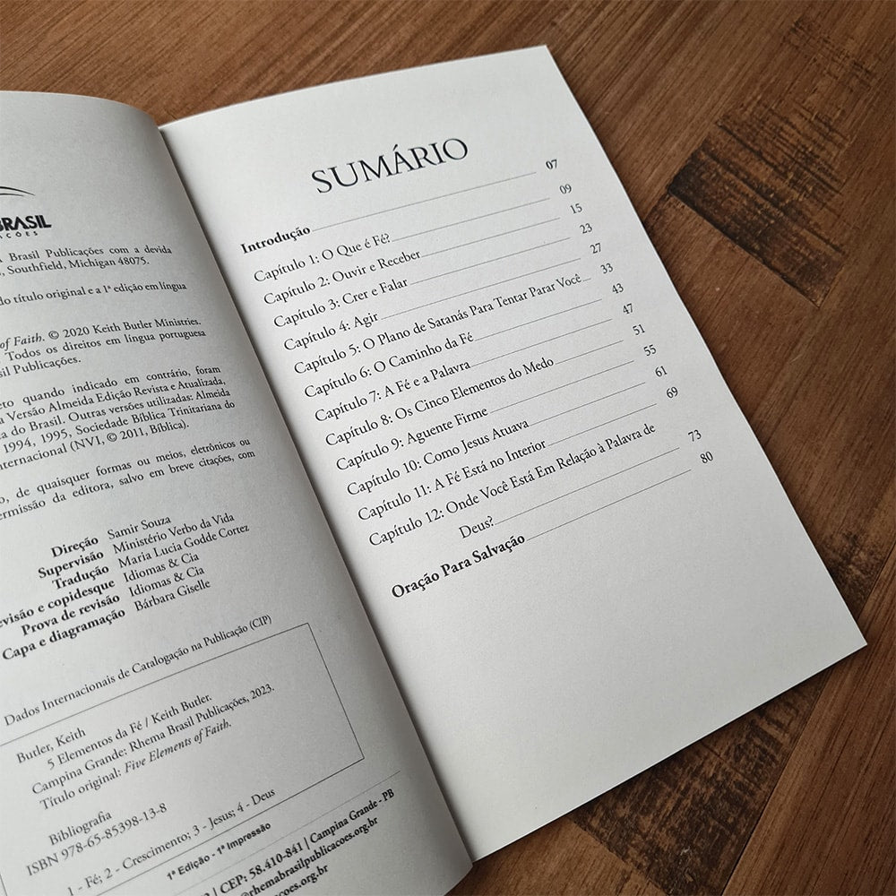 Especificações do Livro 5 Elementos da Fé