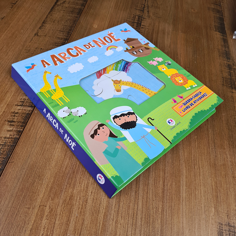 Divirta-se com a arca de noé neste kit incrível, com quebra-cabeça e livro de atividades. Você vai amar!