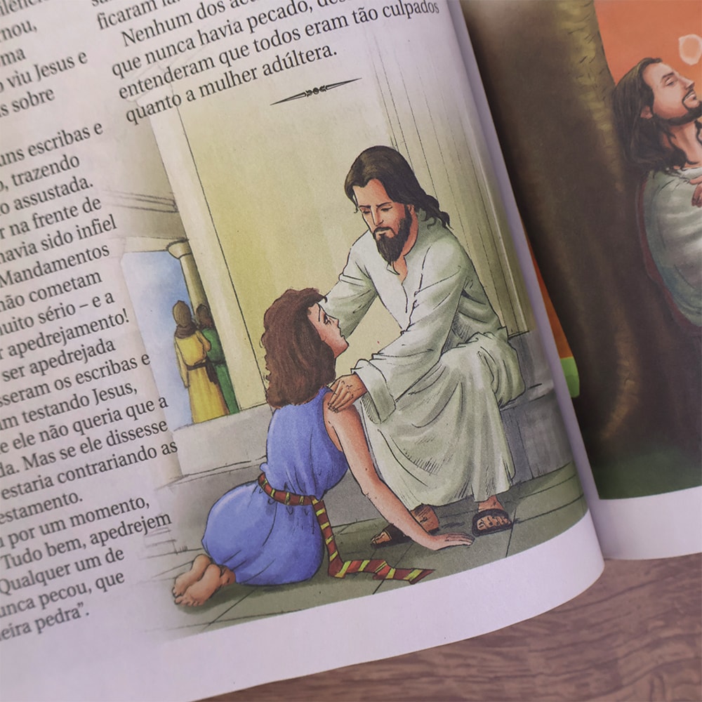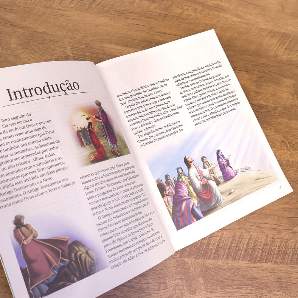 As historias do livro mais lido do mundo estão nesta obra especial, totalmente ilustrada e adaptada para crianças. Para auxiliar o pequeno e jovem leitor, este livro conta também com um mapa das terras bíblicas, lista de pessoas e lugares e glossário. Uma excelente opção de leitura em família, carregada de exemplos de fé, superação, coragem, esperança e amor.