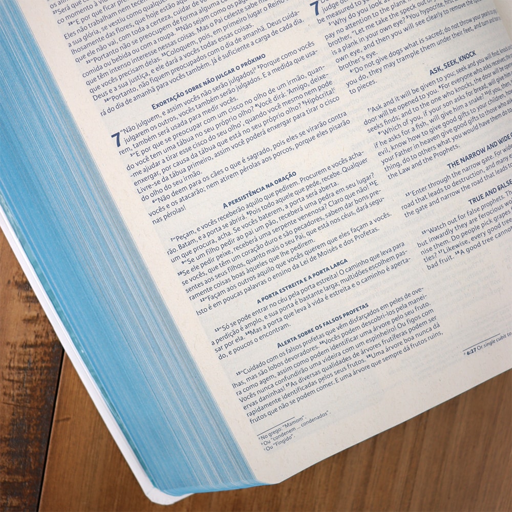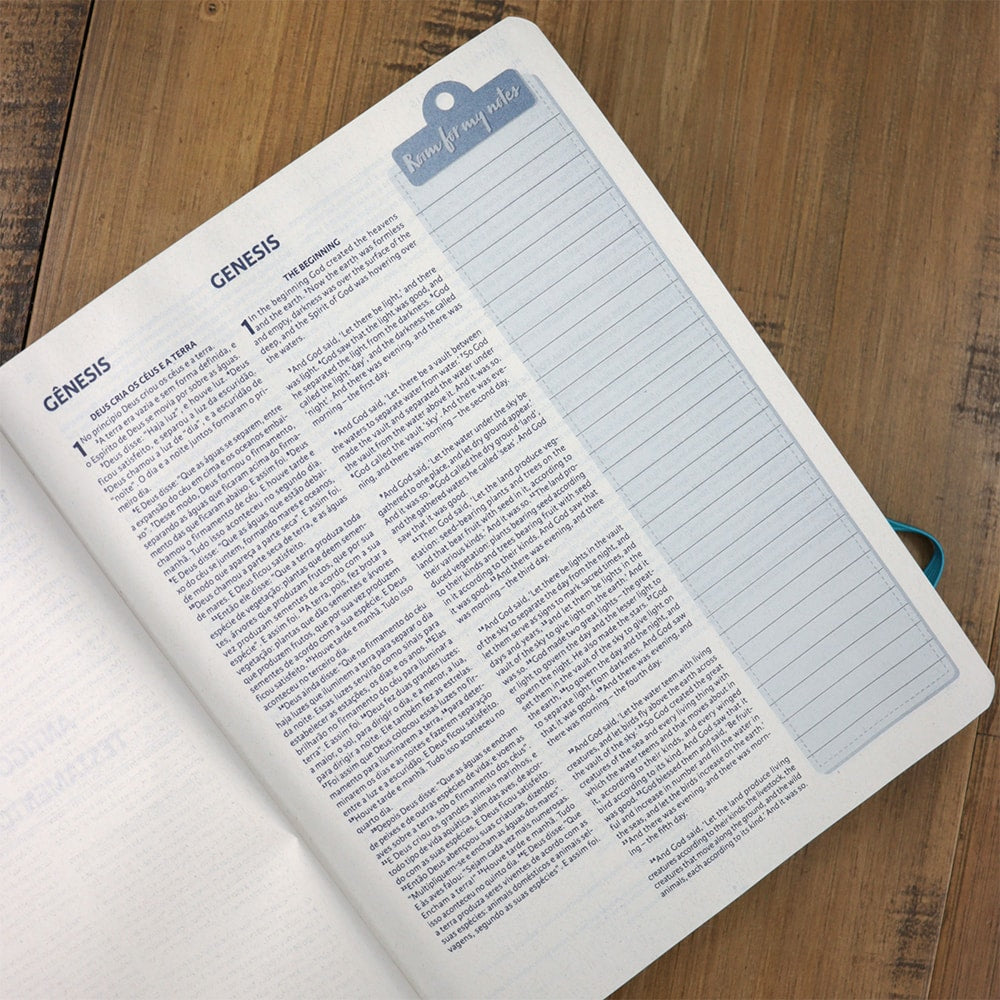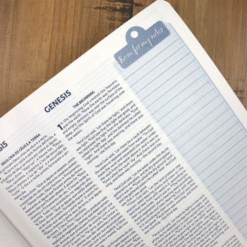 Seja para anotar passagens inspiradoras, esclarecer dúvidas de inglês durante o estudo bíblico ou registrar reflexões pessoais, este espaço para personalização torna a Bíblia Bilíngue NBV-NIV uma companheira indispensável para qualquer estudante da Palavra de Deus. Permita-se mergulhar mais fundo na Palavra, conectando-se não apenas com o texto sagrado, mas também com suas próprias reflexões e aprendizados pessoais.