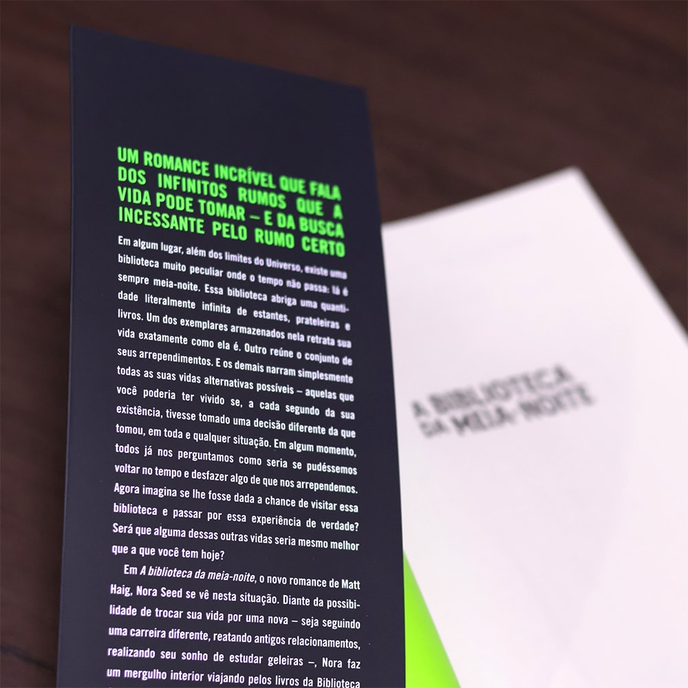 Em A Biblioteca da Meia-Noite, Nora Seed se vê exatamente na situação pela qual todos gostaríamos de poder passar: voltar no tempo e desfazer algo de que nos arrependemos. Diante dessa possibilidade, Nora faz um mergulho interior viajando pelos livros da Biblioteca da Meia-Noite até entender o que é verdadeiramente importante na vida e o que faz, de fato, com que ela valha a pena ser vivida.