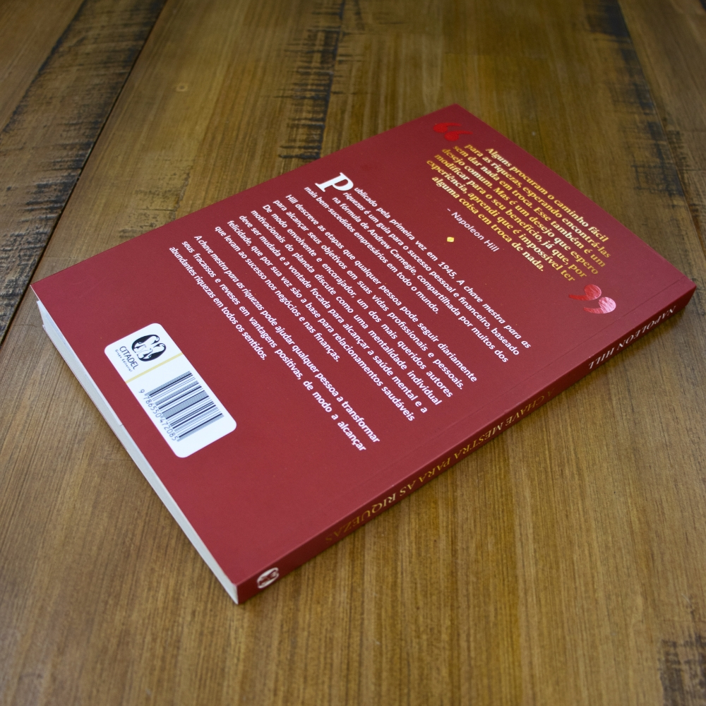 Publicado pela primeira vez em 1945, A chave mestra para as riquezas é um guia para o sucesso pessoal e financeiro, baseado na fórmula de Andrew Carnegie, compartilhada por muitos dos mais bem-sucedidos empresários em todo o mundo. Hill descreve as etapas que qualquer pessoa pode seguir diariamente para alcançar seus objetivos em suas vidas profissionais e pessoais. De modo envolvente e encorajador, um dos mais queridos autores motivacionais do planeta discute como uma mentalidade individual deve ser mudada e a vontade focada para alcançar a saúde mental e a felicidade, que por sua vez são a base para relacionamentos saudáveis que levam ao sucesso nos negócios e nas finanças. A chave mestra para as riquezas pode ajudar qualquer pessoa a transformar seus fracassos e reveses em vantagens positivas, de modo a alcançar abundantes riquezas em todos os sentidos.