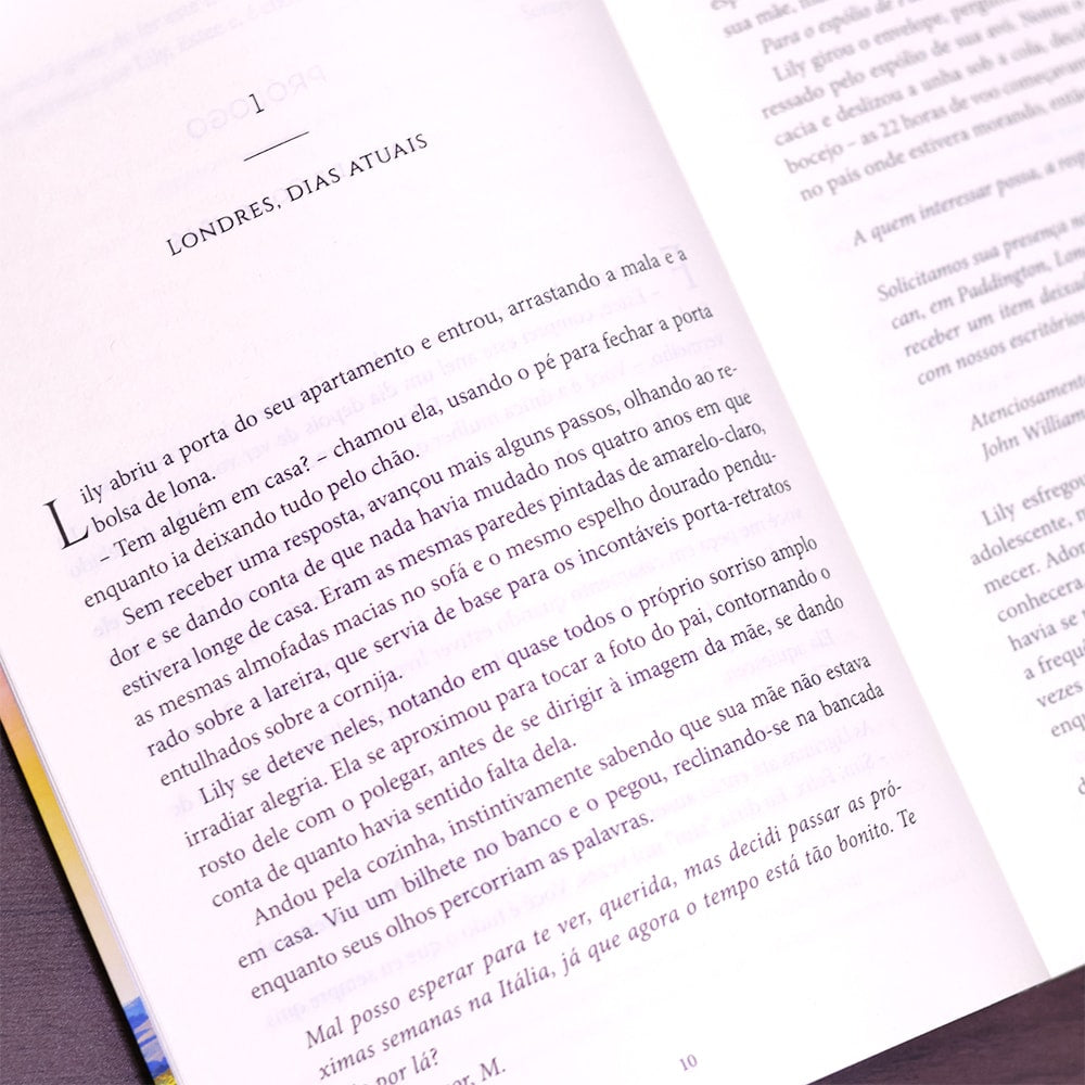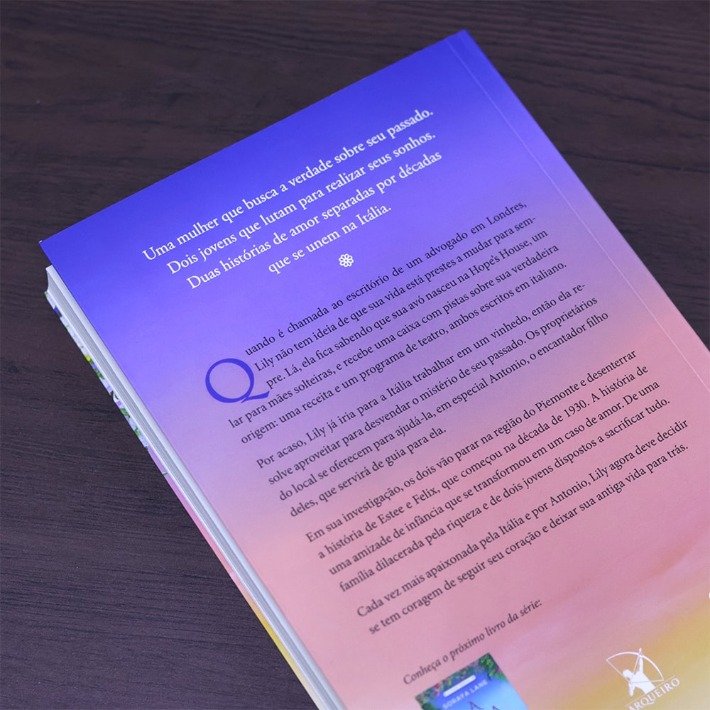 Quando é chamada ao escritório de um advogado em Londres, Lily não tem ideia de que sua vida está prestes a mudar para sempre. Lá, ela fica sabendo que sua avó nasceu na Hope’s House, um lar para mães solteiras, e recebe uma caixa com pistas sobre sua verdadeira origem: uma receita e um programa de teatro, ambos escritos em italiano.