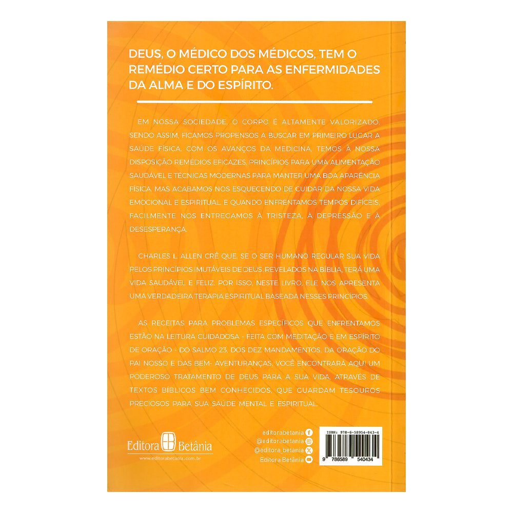 Deus que é nosso médico nos convida a ir a ele; a consulta é gratuita. O tratamento, em linhas gerais, é bem semelhante ao que muitos psiquiatras recomendam hoje em dia: um retorno à fé. Um livro de leitura amplamente compensadora, que ajudará o leitor a compreender melhor suas experiências cristãs e a viver uma vida mais saudável e feliz.