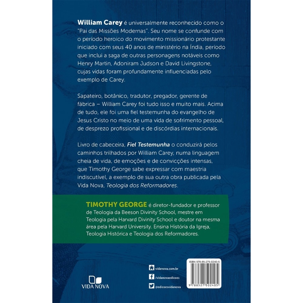 Sapateiro, botânico, tradutor, pregador, gerente de fábrica – William Carey foi tudo isso e muito mais. Foi, sobretudo, testemunha fiel do evangelho de Cristo, tendo pago alto preço na vida para alcançar seus ideais missionários.