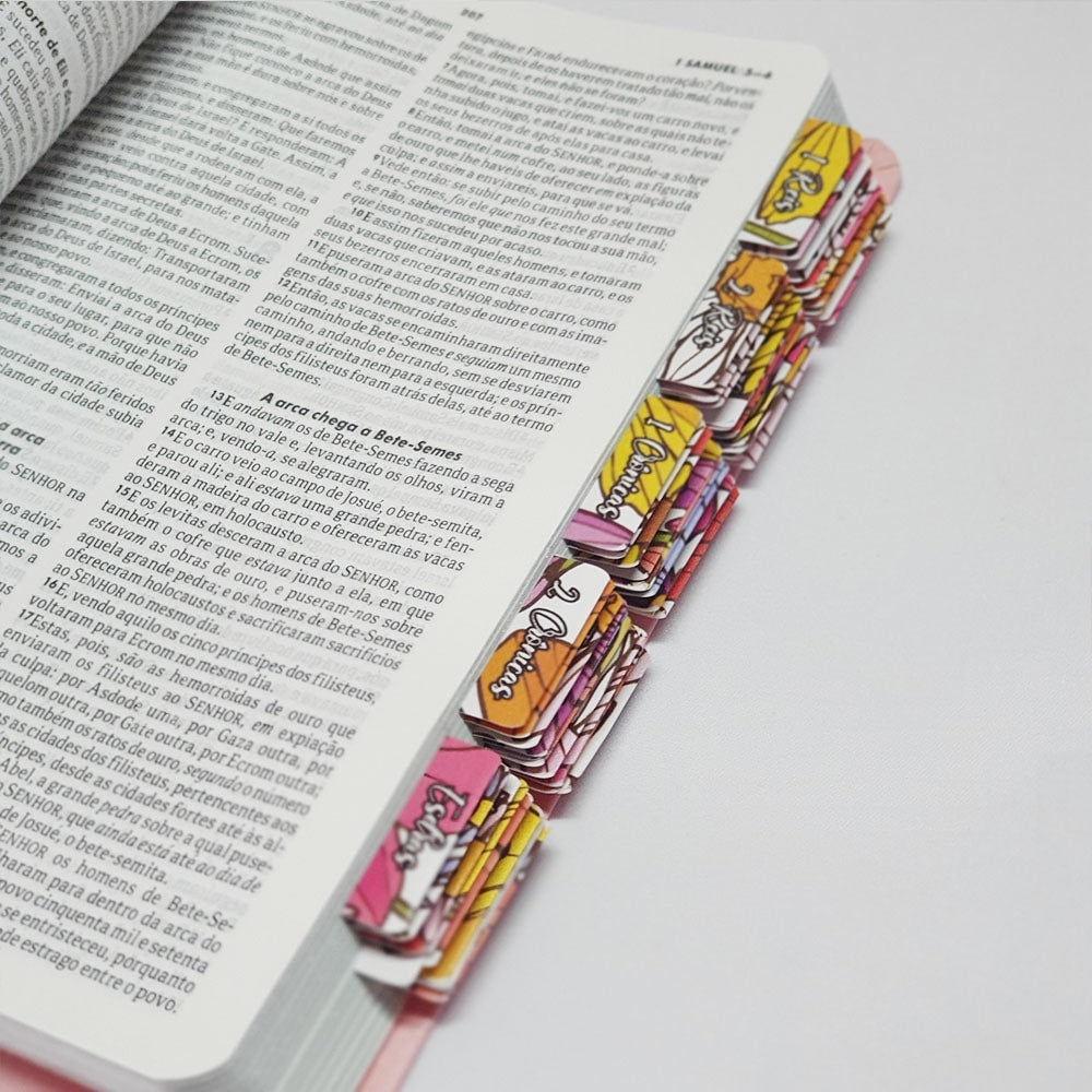 Abas adesivas para decorar a sua bíblia.Decore a sua bíblia com essas lindas abas, que servirão como índice para você localizar com mais facilidade os livros bíblicos. De Gênesis a Apocalipse, divido em diversas cores. Você só precisará destacar e colar em sua bíblia, é muito fácil!