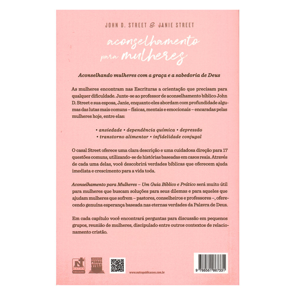 Aconselhamento para Mulheres - Um Guia Bíblico e Prático, escrito pelos experientes conselheiros bíblicos John D. Street e Janie Street, é um recurso transformador que confronta os padrões do mundo com a sabedoria infalível das Escrituras.