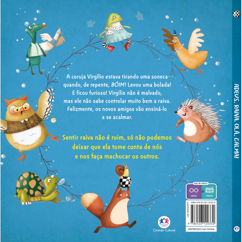Virgílio, a coruja, estava tirando uma soneca tranquila quando — BÓIM! — levou uma bolada do nada! Que raiva! Ele ficou tão furioso que nem sabia o que fazer com tanto sentimento. Virgílio não é mau, só ainda não aprendeu a lidar com a raiva. Mas, com a ajuda de novos amigos, vai descobrir que sentir raiva é normal — o importante é aprender a expressar esse sentimento sem machucar ninguém. Porque todo mundo sente raiva de vez em quando... e tudo bem!