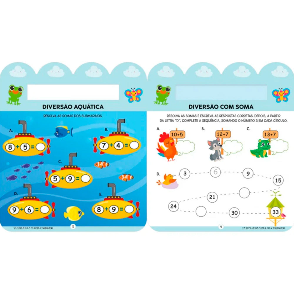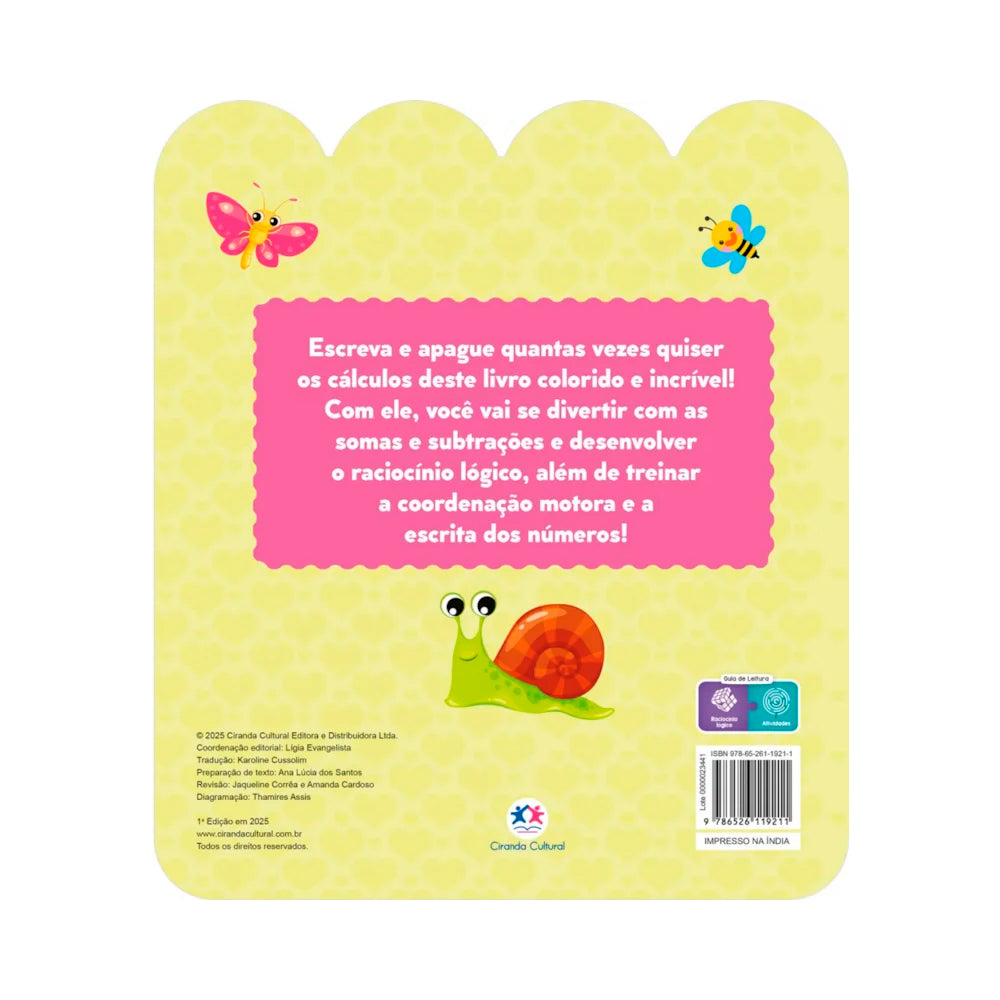 Este livro colorido e interativo oferece uma abordagem prática para o aprendizado de somas e subtrações. As crianças podem escrever e apagar os cálculos quantas vezes quiserem, o que torna o processo de aprendizado mais dinâmico e menos intimidador. Além de treinar a coordenação motora, a obra auxilia no desenvolvimento do raciocínio lógico, preparando as crianças para desafios matemáticos futuros.