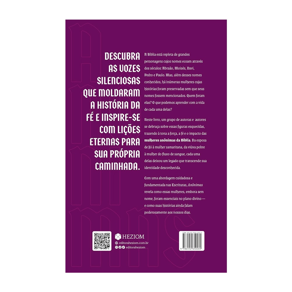 Neste livro, autoras e autores resgatam as histórias de mulheres anônimas da Bíblia — figuras sem nome, mas com legados marcantes. Da esposa de Jó à mulher samaritana, suas trajetórias revelam fé, coragem e um papel essencial no plano divino. Com base nas Escrituras, Anônimas mostra como essas mulheres continuam a inspirar, mesmo sem identidade revelada.