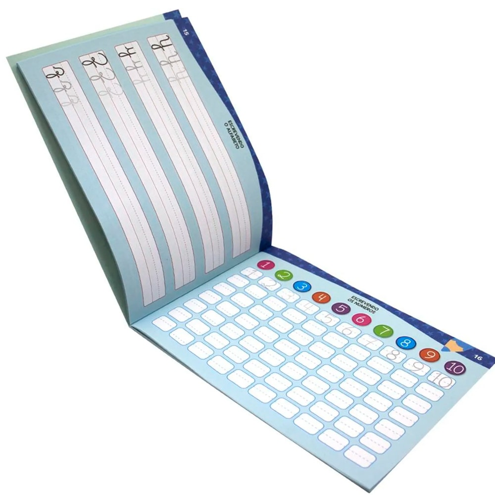 A prática da caligrafia é um passo fundamental no desenvolvimento escolar infantil. Este livro de caligrafia foi projetado para estimular a coordenação motora fina e fornecer as bases para uma escrita correta e clara, trabalhando a forma e o contorno de cada letra e número.