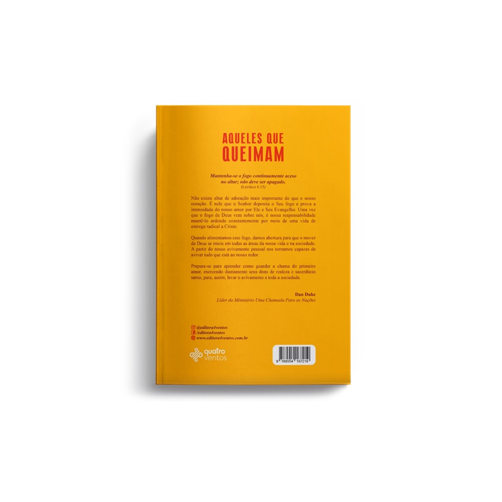 O fogo sempre aceso no altar do seu coração Não há altar de adoração ao Senhor mais importante do que o nosso coração. É nele que o senhor deposito o amor através do Seu fogo e põem a prova a intensidade do nosso amor por Ele e Seu evangelho. Uma vez que esse fogo vem sobre nós, é de nossa responsabilidade mantermos a chama ardendo constantemente sobre o altar do nosso coração através de uma vida de entrega completa a Jesus Cristo. Quando esse fogo é alimentado dentro de nós, é aberto como uma brecha para o mover sobrenatural de Deus de início em nossas vidas através de nós e na sociedade. A partir do nosso avivamento pessoal somos capacitados a avivar tudo a nossa volta. Ao ler Aqueles que queimam, Dan Duke despertar no leitor um desejo de aprender como guardar e manter a chama do primeiro amor, praticando diariamente seus dons de realeza e sacerdócio santo, para, assim trazer um impacto e avivamento em toda a sociedade.Título: | Aqueles que Queimam |