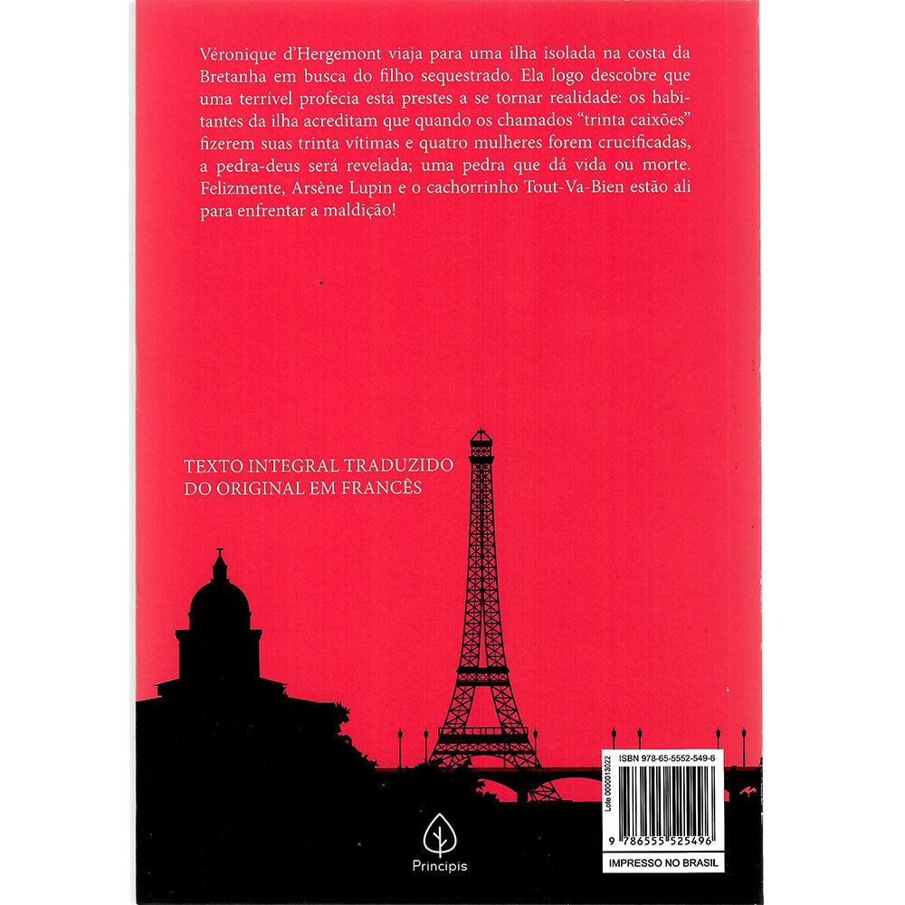 Véronique dHergemont viaja para uma ilha isolada na costa da Bretanha em busca do filho sequestrado. Ela logo descobre queuma terrível profecia está prestes a se tornar realidade: os habitantes da ilha acreditam que quando os chamados trinta caixões fizerem suas trinta vítimas e quatro mulheres forem crucificadas, a pedra-deus será revelada uma pedra que dá vida ou morte. Felizmente, Arsène Lupin e o cachorrinho Tout-Va-Bien estão ali para enfrentar a maldição!