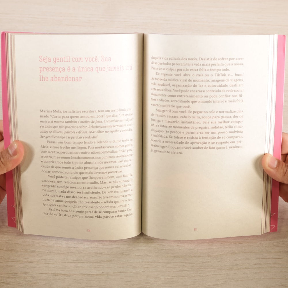 Com crônicas delicadas, histórias vividas, cartas pessoais e reflexões, a autora constrói pontes para o autoconhecimento, abordando sentimentos universais. Seus textos soam como conversas íntimas, direcionadas a amigos, família e amores, envolvendo o leitor de forma pessoal, como um conselho acolhedor.