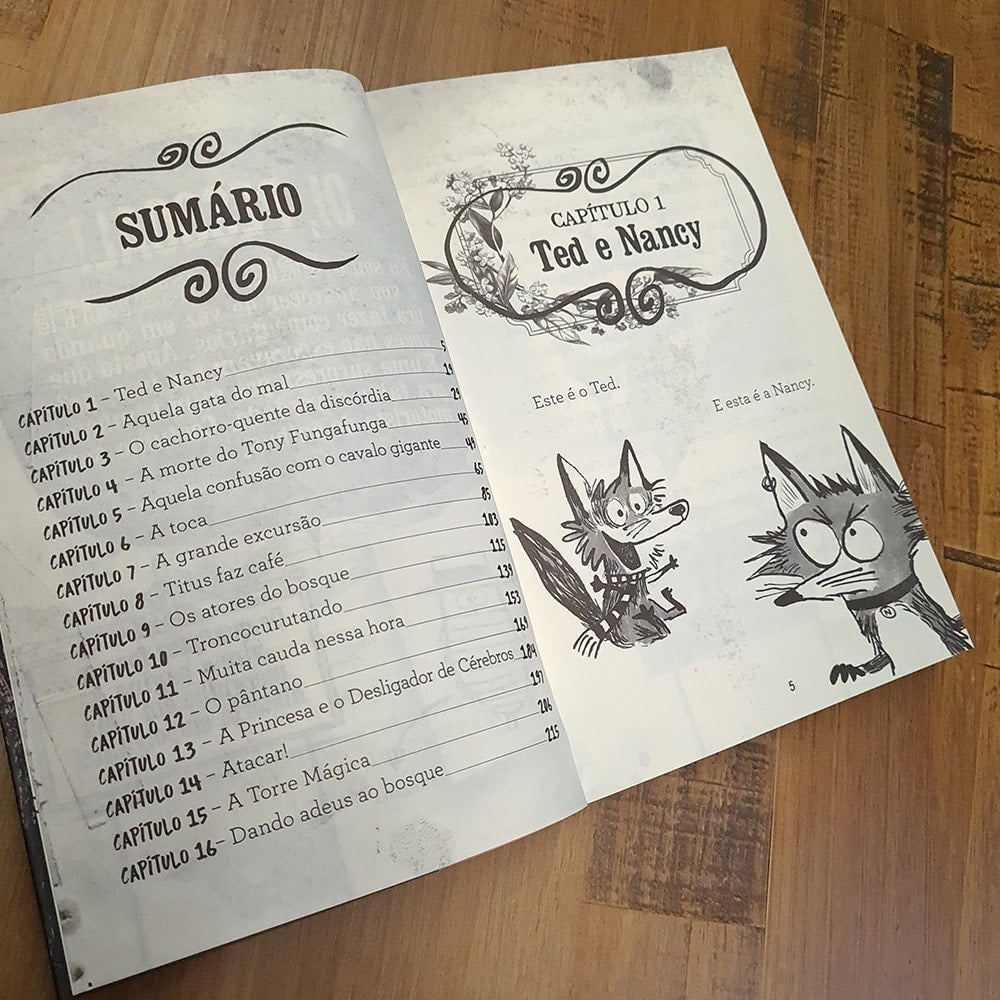Divertido e cheio de mistérios! Os irmãos Ted e Nancy são filhotes de raposa que vivem fugindo da Princesa Amorzinho, a gata mais temida da Cidade Grande. Cansados de tanto fugir, eles resolvem se mudar para um lugar mais tranquilo: o bosque Grimwood. Mas o que eles não esperavam era encontrar uma coruja esperta, patos dramáticos, coelhos rebeldes, esquilos atrevidos e muitos outros bichos malucos. E quando a terrível gata os encontra, os animais do bosque precisam se unir, para juntos viverem a maior aventura de suas vidas! Uma série divertida e cheia de surpresas, que vai fazer os leitores implorarem para ler mais!