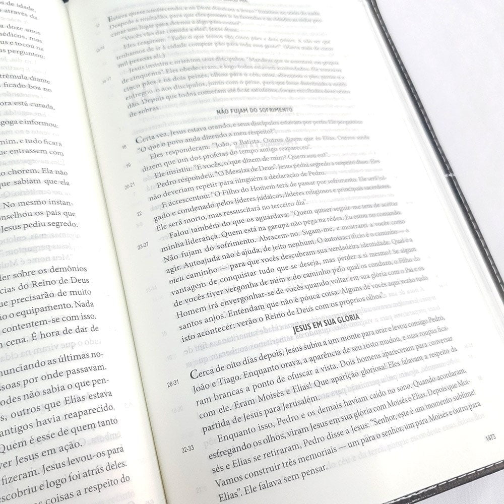 A Mensagem é uma Bíblia de leitura. Não tem a intenção de substituir as excelentes versões da Bíblia já disponíveis. O objetivo deste texto é apenas levar as pessoas a ler, pessoas que não sabem que a Bíblia é um livro para ser lido - pelo menos por elas - e pessoas que perderam há muito o interesse pelas Escrituras. Estilo e recursos de estudo adicionais fazem de A Mensagem a tradução contemporânea preferida nos dias atuais. Tudo isso, aliado à linguagem cotidiana, proporciona uma experiência de leitura dinâmica e surpreendente da Bíblia que você já conhece.Título: | Bíblia - A Mensagem |