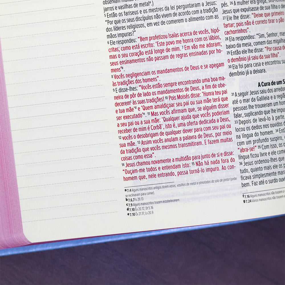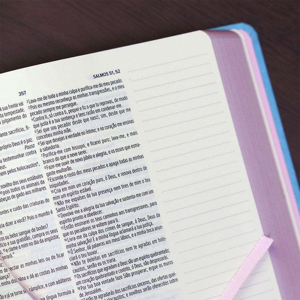Bíblia NVI - Leia e Anote, luxo traz um design cuidadosamente pensado para permitir que você faça anotações e comentários a partir da leitura das Escrituras. A edição de luxo, na Nova Versão Internacional (NVI), tem um acabamento de alta qualidade que proporciona maior conforto para anotações e melhor visibilidade do texto.