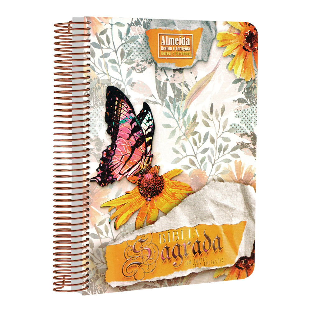 Bíblia com Pautas para Anotações | ARC | Harpa e Corinhos | Letra Normal | Capa Dura Espiral Floral Abstrato