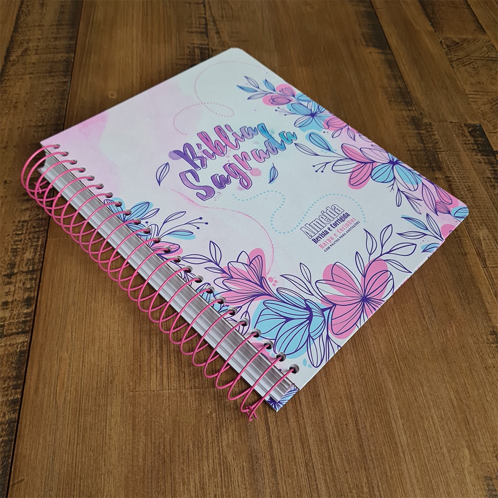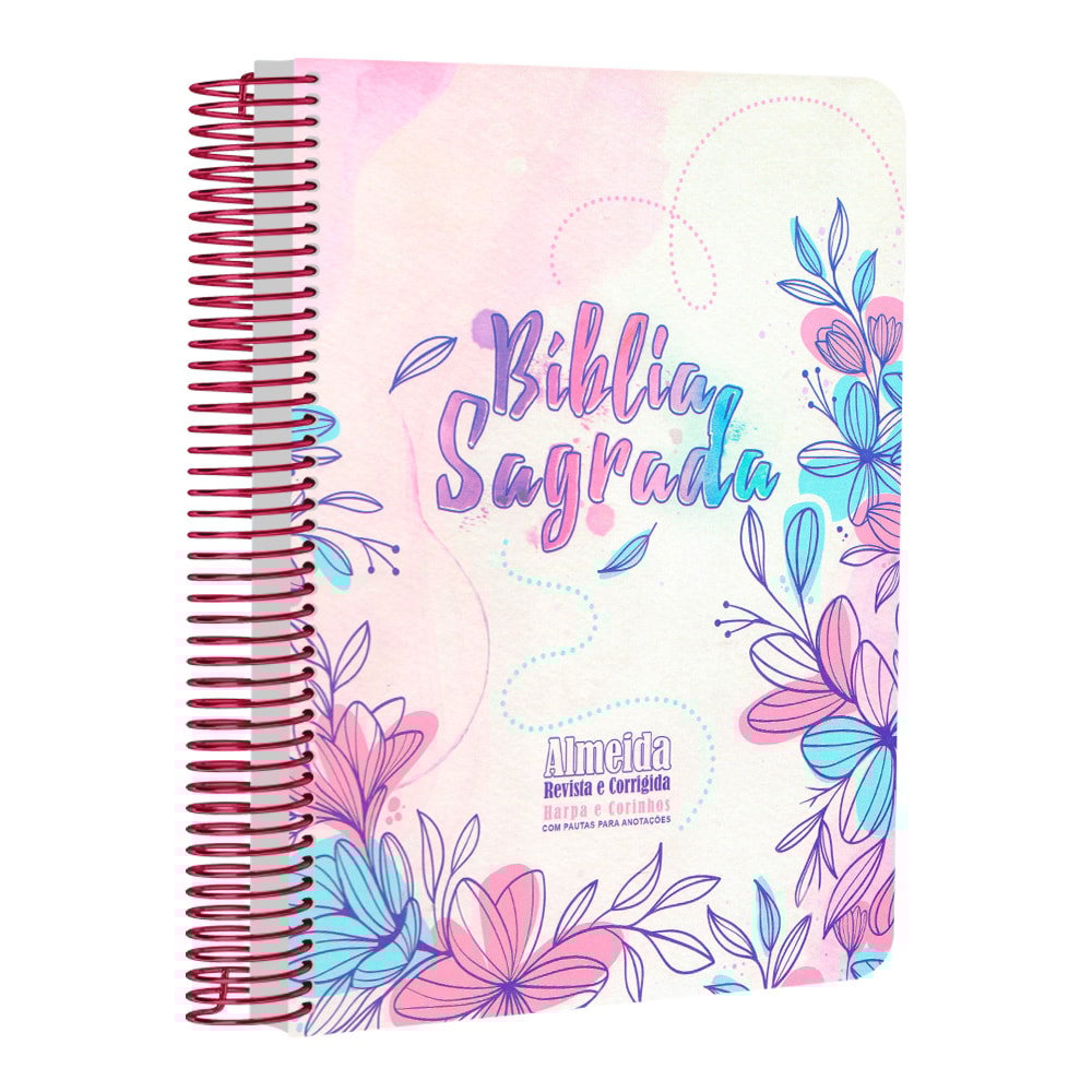 Bíblia com Pautas para Anotações | ARC | Harpa e Corinhos | Letra Normal | Capa Dura Espiral Flores Desenho