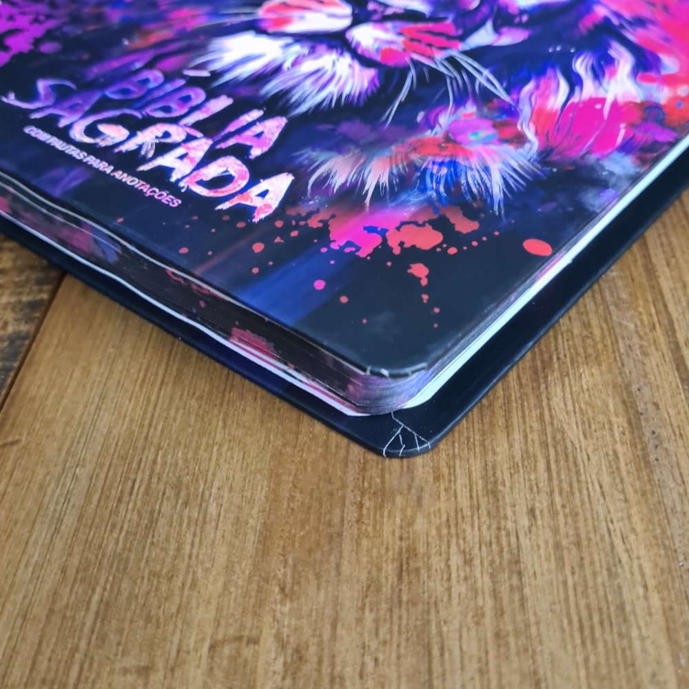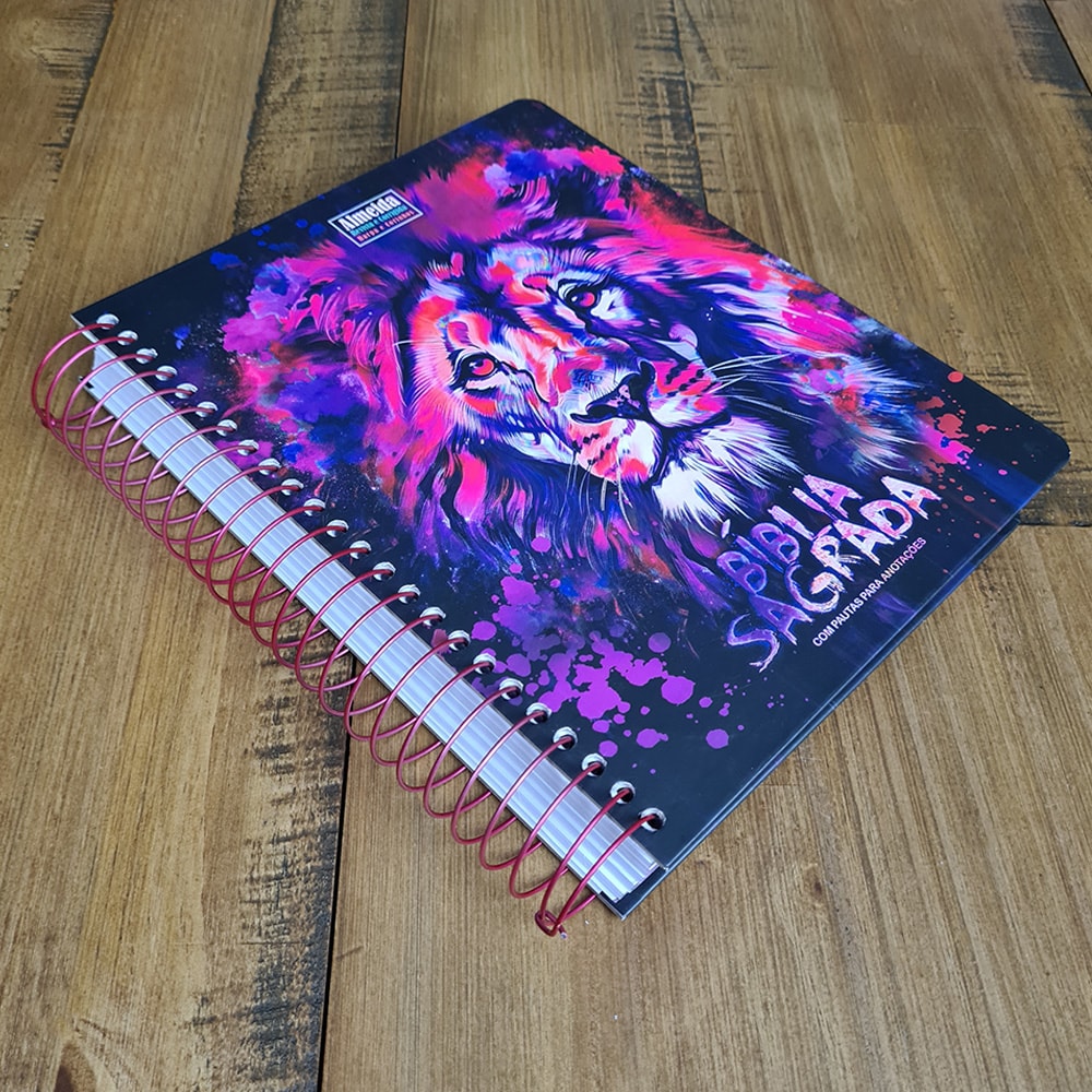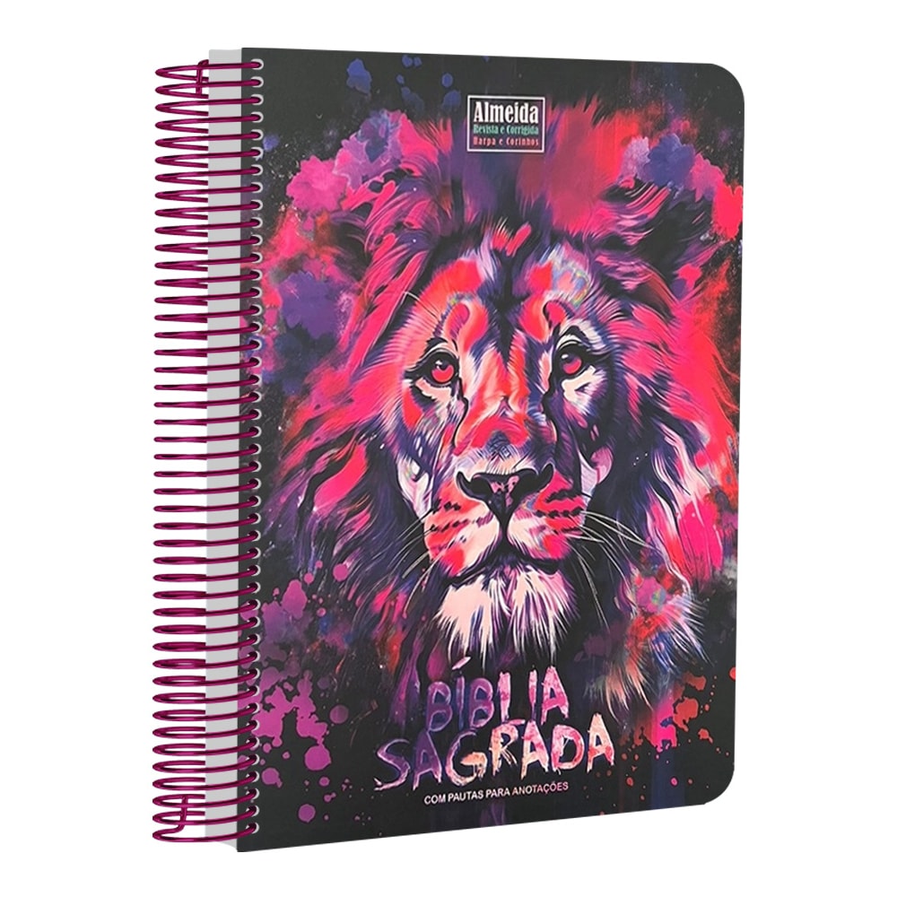 Bíblia com Pautas para Anotações | ARC | Harpa e Corinhos | Letra Normal | Capa Dura Espiral Leão Aquarela