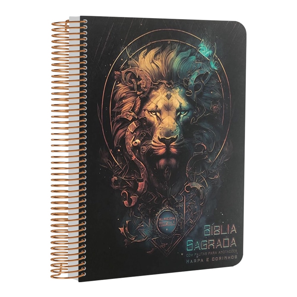Bíblia com Pautas para Anotações | ARC | Harpa e Corinhos | Letra Normal | Capa Dura Espiral Leão Dourado