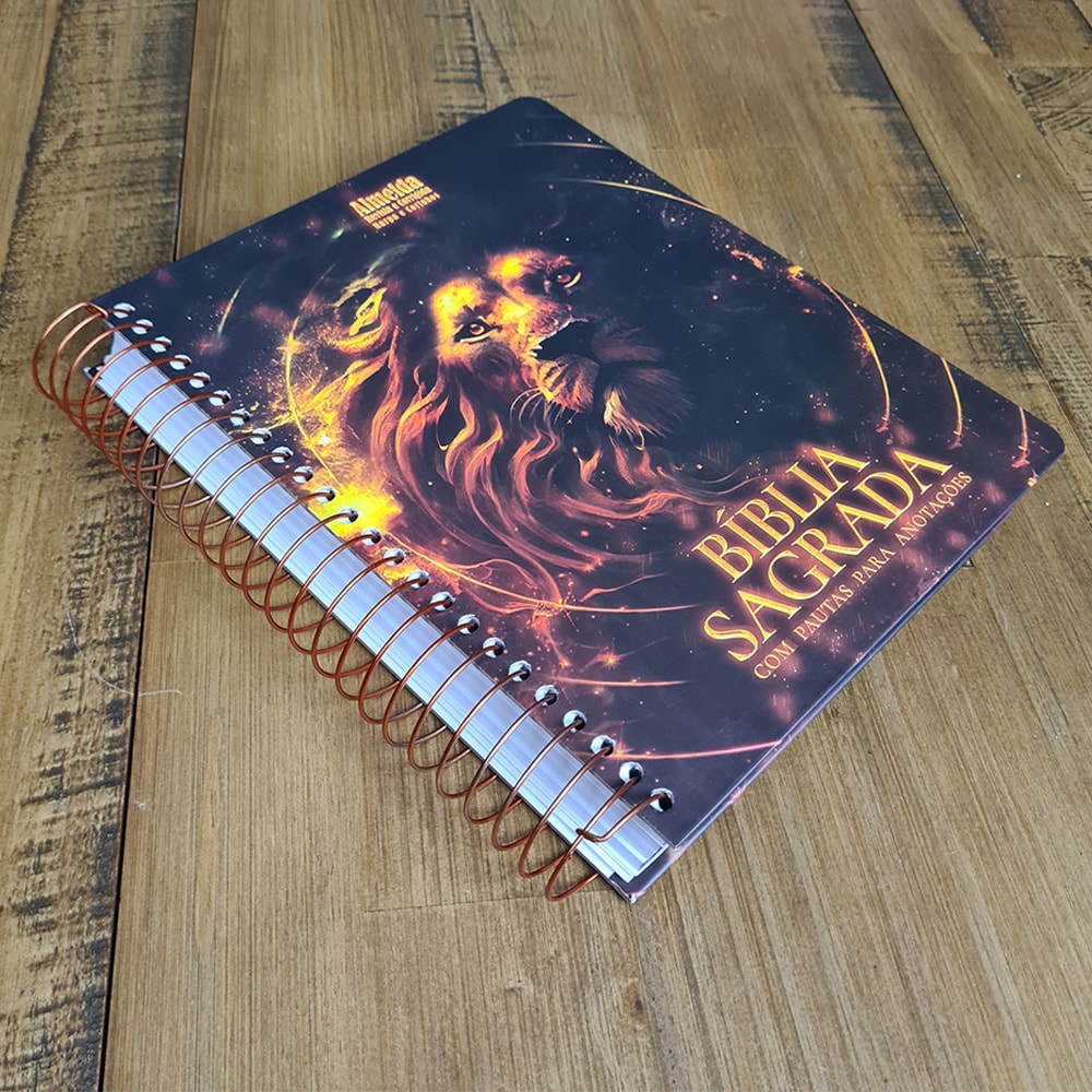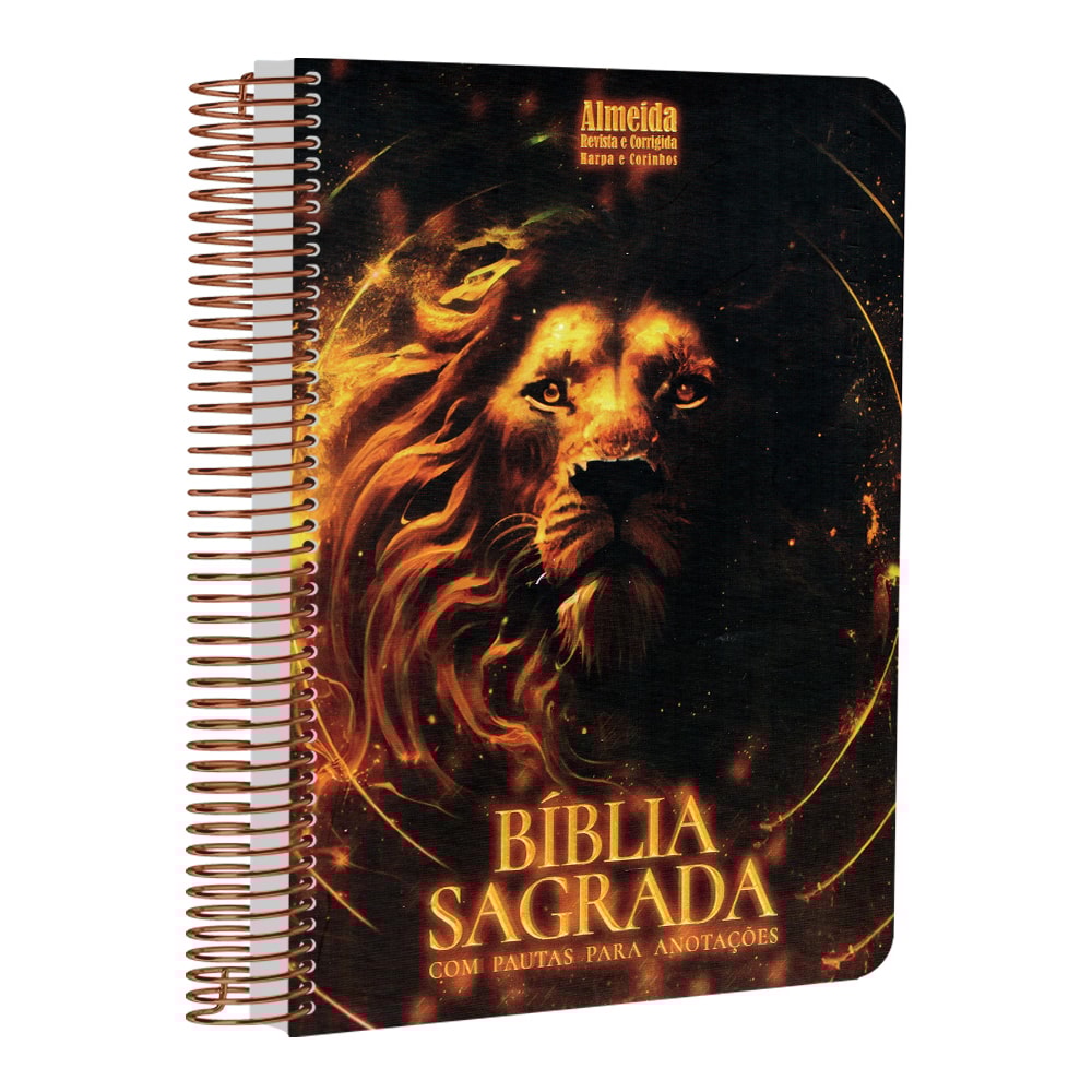 Bíblia com Pautas para Anotações | ARC | Harpa e Corinhos | Letra Normal | Capa Dura Espiral Leão Épico