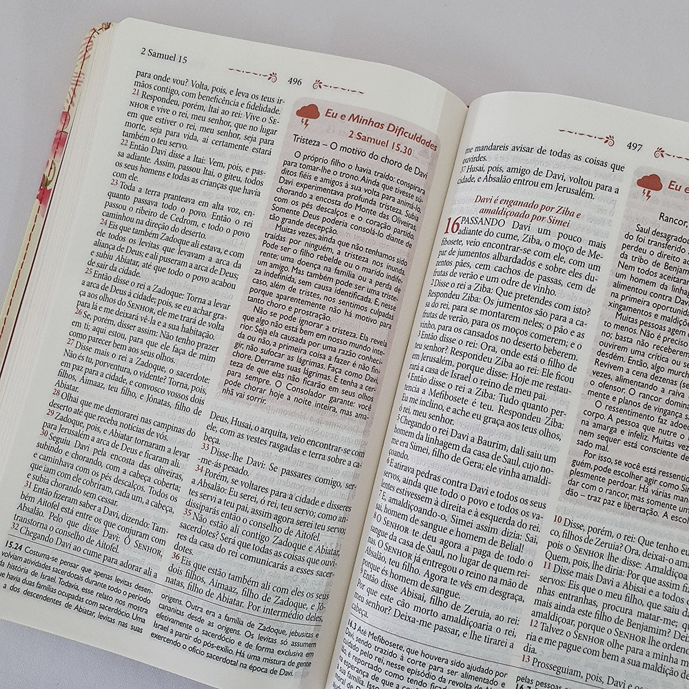 A Bíblia que toda mulher deseja. As mulheres de valor sonham em serem iguais a mulher virtuosa descrita na Bíblia. E a Bíblia da Mulher Virtuosa veio para ajudar todas as mulheres que têm fome de Deus a crescerem na sua jornada como mulheres virtuosas. O segredo para isso está em conhecer melhor a Palavra de Deus. E essa Bíblia de estudo ajuda com destreza a fazer as mulheres compreenderem as Escrituras de uma forma mais profunda e ao mesmo tempo prática. Os recursos e estudos dessa bíblia foram escritos especificamente pensando nas necessidades das mulheres nas áreas: espiritual, emocional, social, familiar profissional e de caráter. A Bíblia da Mulher Virtuosa é a mais completa bíblia de estudo para mulheres, onde a maior parte das notas e artigos foram escritos por mulheres brasileiras. O projeto levou 7 anos e contou com a participação de dezenas de mulheres, que criaram simplesmente a mais empolgante bíblia de estudo para mulheres que existe em língua portuguesa.