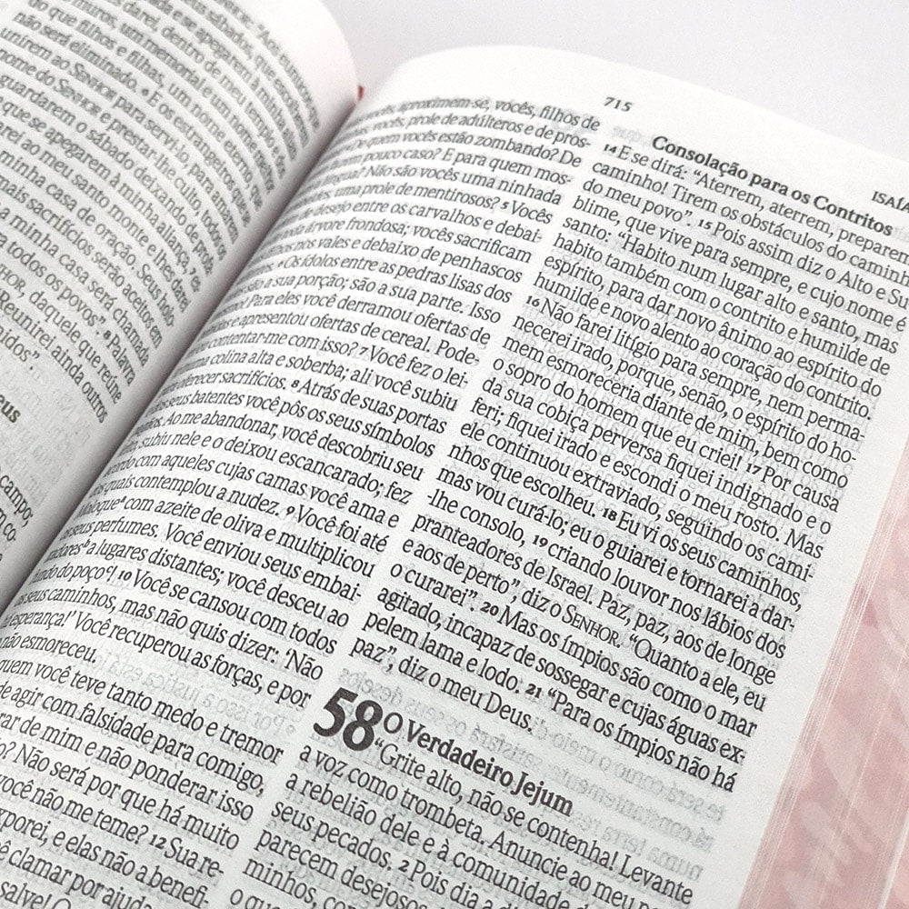 A Bíblia da Mulher Vitoriosa traz as palavras de Jesus em vermelho, texto especial da pastora Elizete Malafaia sobre diversos temas, mapas e índice de assuntos com referências para encontrar na Bíblia, além de letra gigante e acabamento de luxo.