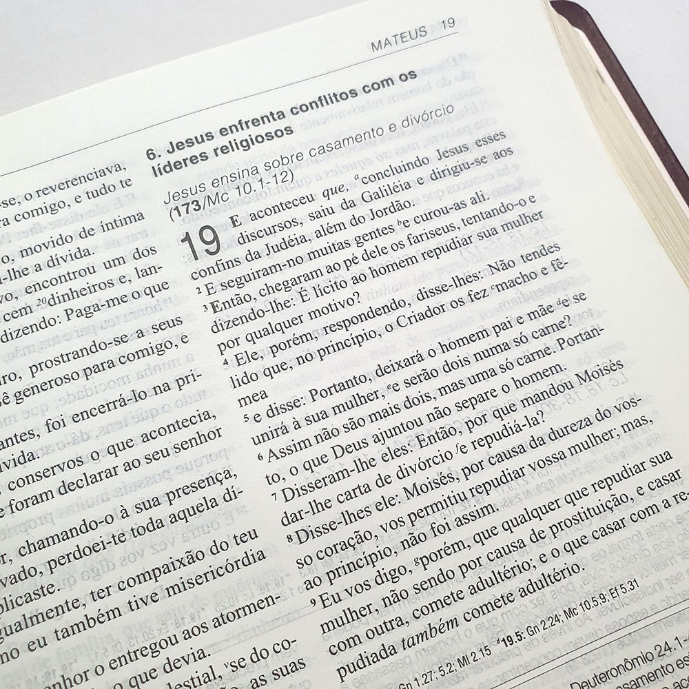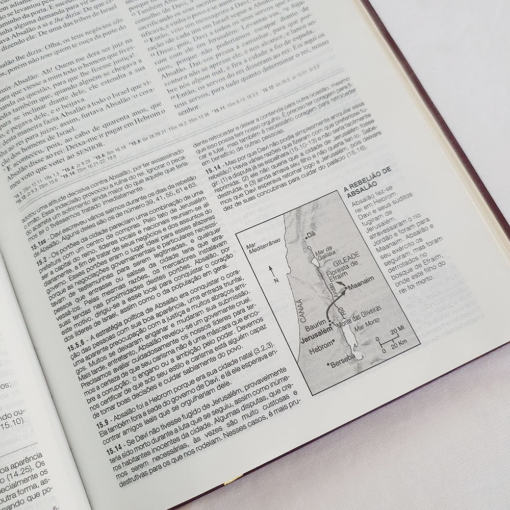 Com a Bíblia de Estudo Aplicação Pessoal o leitor descobrirá com muito mais profundidade verdades eternas contidas nos textos bíblicos, enxergando a relevância delas e, principalmente, podendo aplicá-las à sua própria vida, permitindo assim, uma maior comunhão com o Criador. Meditar em um texto bíblico e aplicá-lo no viver diário é parte vital do relacionamento do crente com Deus; a base de uma vida cristã abundante. Recursos: Cronologia bíblica; 10.000 notas aplicativas; Esboço dos livros; Perfis de personagens Bíblicos; Harmonia dos Evangelhos; 260 gráficos e diagramas; Referências Cruzadas;Índices de todas as notas, gráficos, diagramas, mapas, perfis, lugares, conceitos teológicos e o relacionamento de várias passagens com outras dentro da Bíblia; Introduções dos Livros Bíblicos; Dicionário e Concordâncias; Programa leitura devocional diária.| Título: | Bíblia de Estudo Aplicação Pessoal Grande |