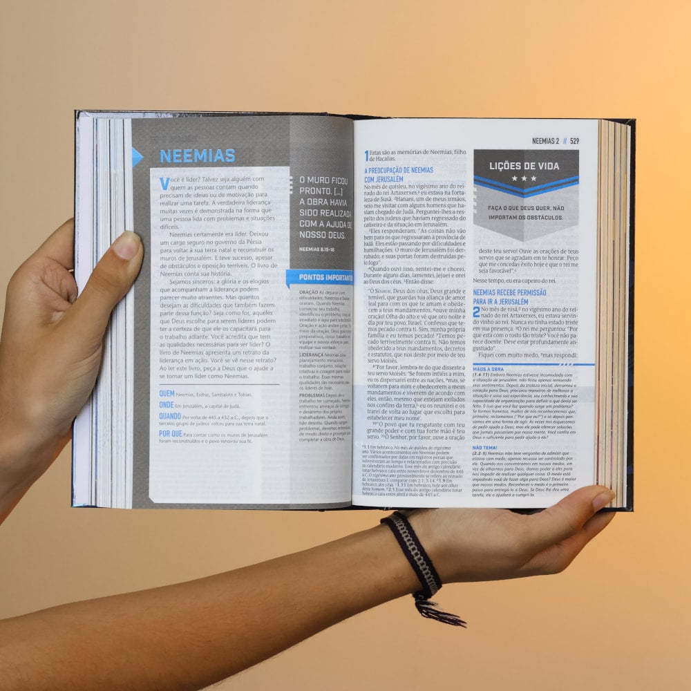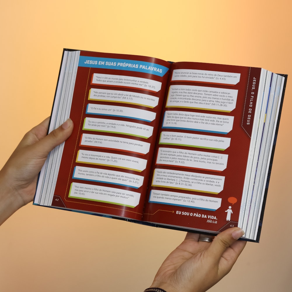 Esta nova e empolgante Bíblia foi especialmente criada para crianças de 8 a 12 anos, apresentando a Palavra de Deus de uma forma envolvente e significativa que ajudará a fortalecer a fé jovem. Inclui oito encartes coloridos da seção Fundamentos para a Fé, que facilitam a compreensão da Bíblia, a descoberta de Jesus e o significado de segui-lo. Além disso, traz perfis de mulheres notáveis da Bíblia, orientações para lidar com desafios diários e relatos de histórias complicadas vividas por crianças dessa faixa etária.