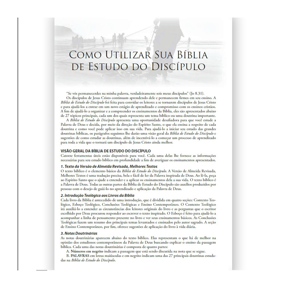 Por meio de cada tema abordado é possível encontrar conteúdos fundamentais para a formação de um discípulo, além de notas explicativas e uma série de artigos com tópicos variados que mostram como o leitor pode se tornar um verdadeiro discípulo de Cristo. Assim, foram destacadas as 27 principais doutrinas cristãs: Ética cristã, Igreja, Liderança, Criação, Discipulado, Educação, Eleição, Evangelismo, O mal e o sofrimento, Deus, Família, História, Bíblia Sagrada, Espírito Santo, Humanidade, Jesus Cristo, Escatologia, Milagres, Missões, Portarias, Oração, Proclamação, Revelação, Salvação, Pecado, Mordomia e Adoração.