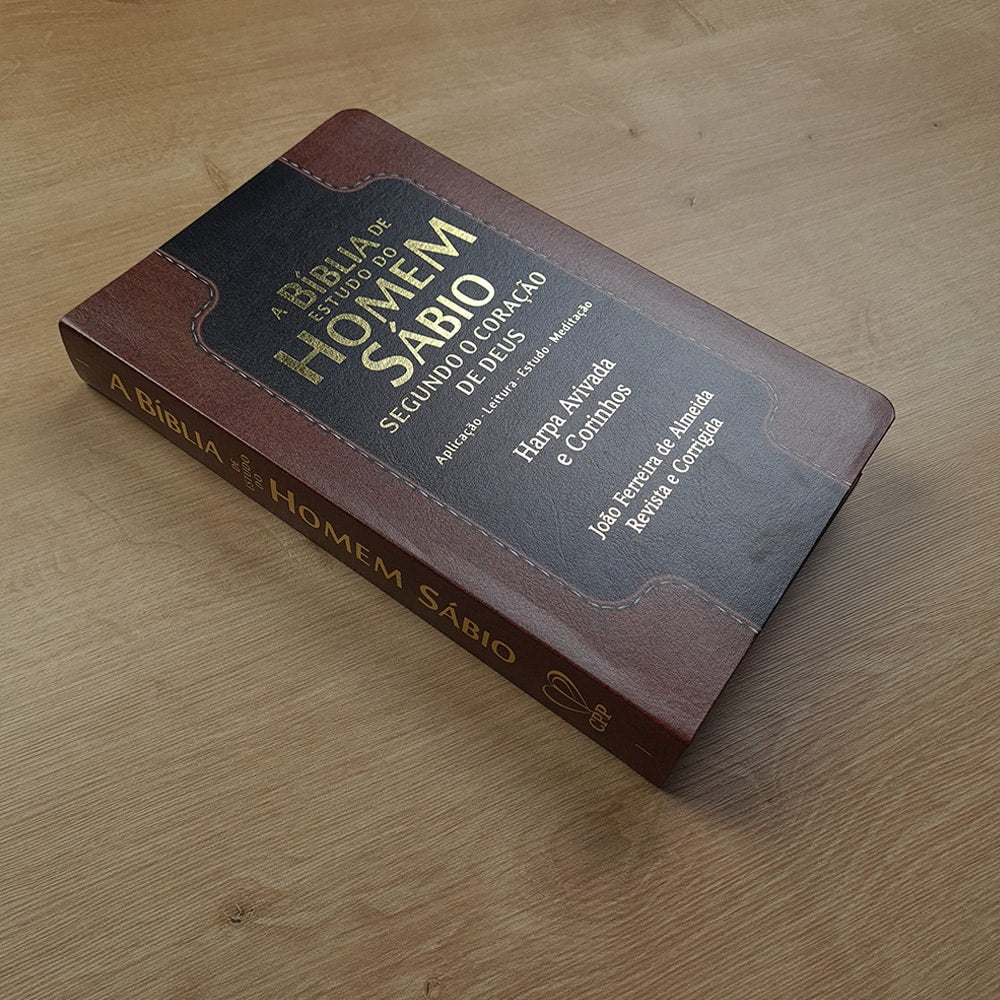 Bíblia de Estudo do Homem Sábio | ARC | Letra Gigante | C/ Harpa e Corinhos | Capa Luxo Marrom e Preto