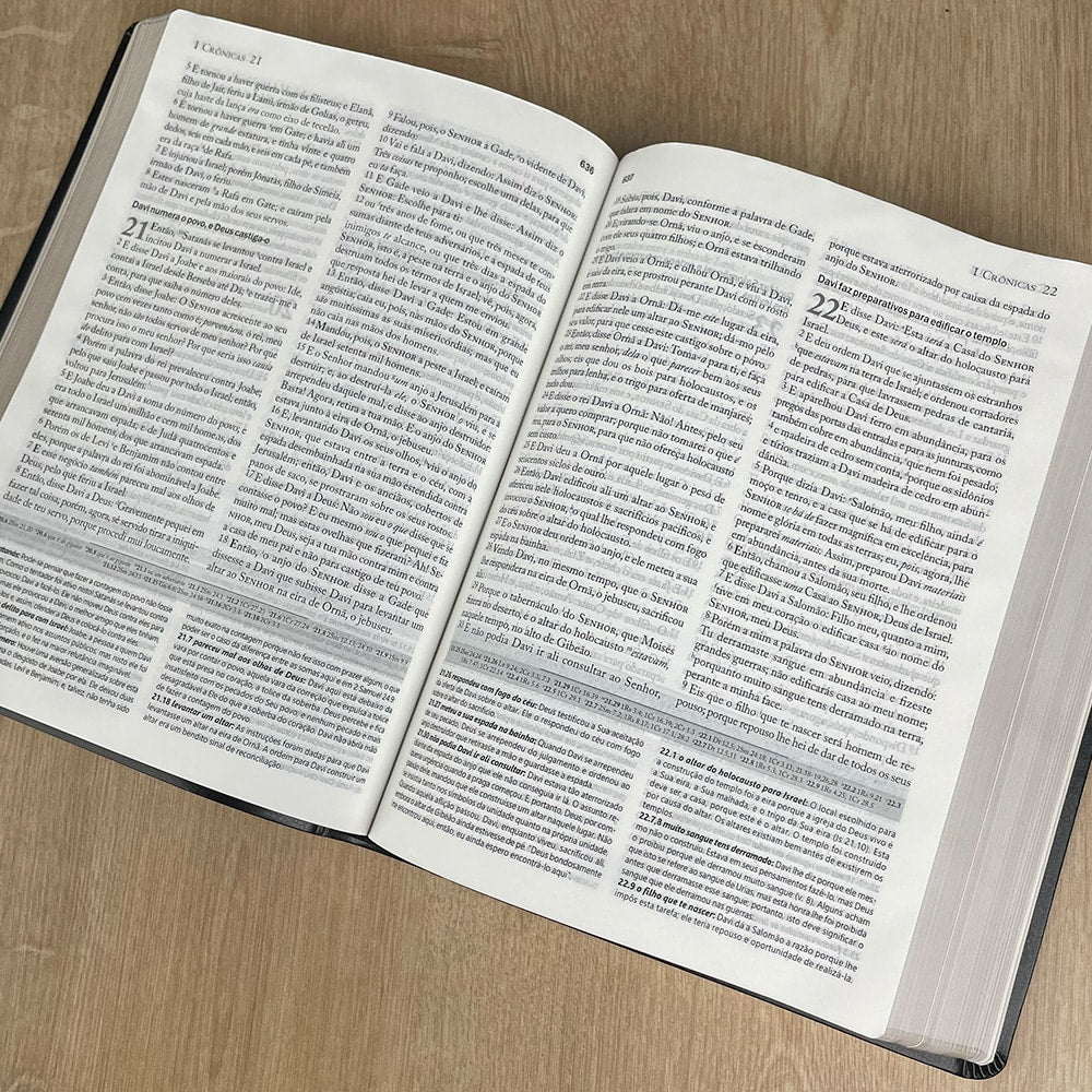 Bíblia Sagrada, com a linguagem na versão ARC (Revista Corrigida) de João Ferreira de Almeida. Sendo a versão mais utilizada pelos evangélicos do Brasil. Com sua fidelidade traduzida dos textos originais pelo missionário português João Ferreira de Almeida, esta obra tem como destaque sua linguagem elegante e culta.