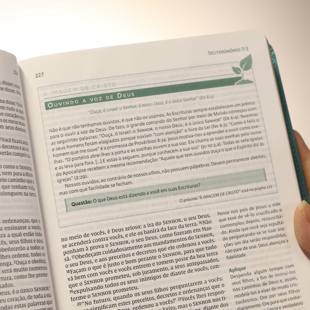 - À imagem de Cristo: boxes que acompanham o plano de salvação ao longo de toda a Escritura, apontam para a vida e ministério de Jesus e são um chamado ao discipulado;