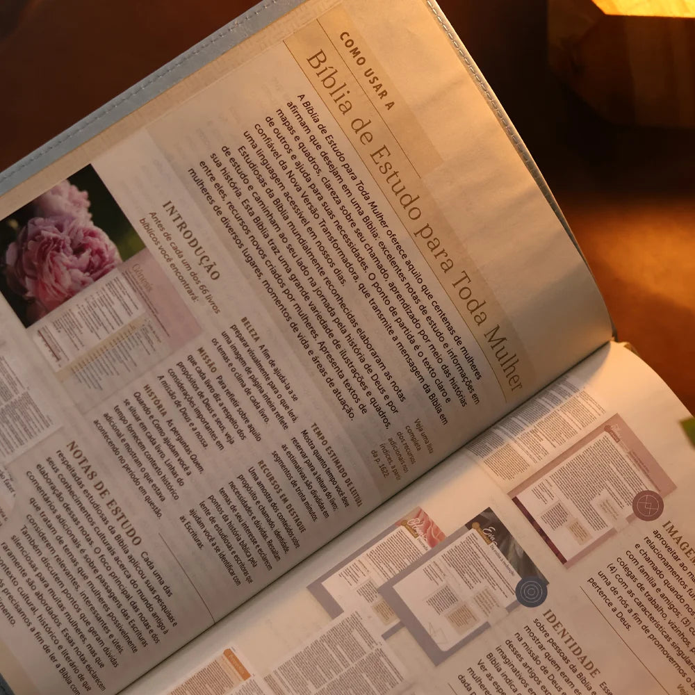 Adquira já a Bíblia de Estudo Para Toda Mulher e experimente uma jornada transformadora através das Escrituras, com recursos que falam diretamente ao coração, à mente e à alma da mulher contemporânea.
