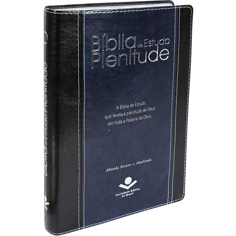 Bíblia de Estudo Plenitude | Letra Normal | ARA | Capa Couro Preta e Azul | c/ Índice