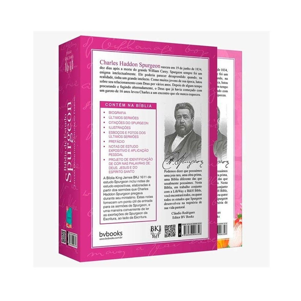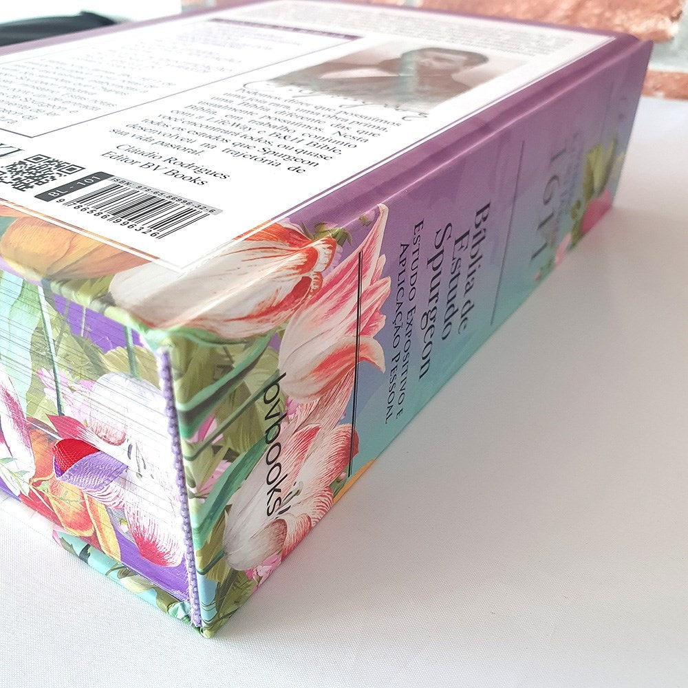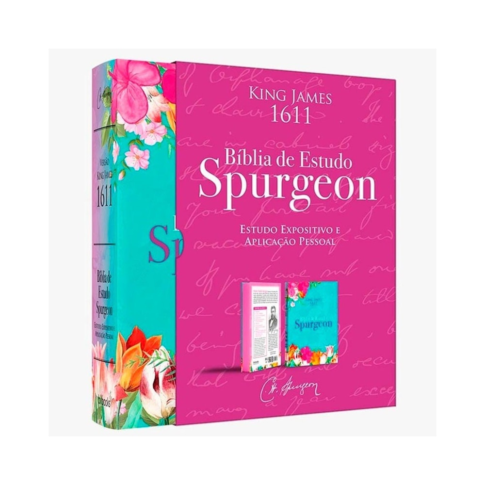 Bíblia de Estudo Spurgeon | King James 1611 | Letra Grande | Luxo | Floral Feminina