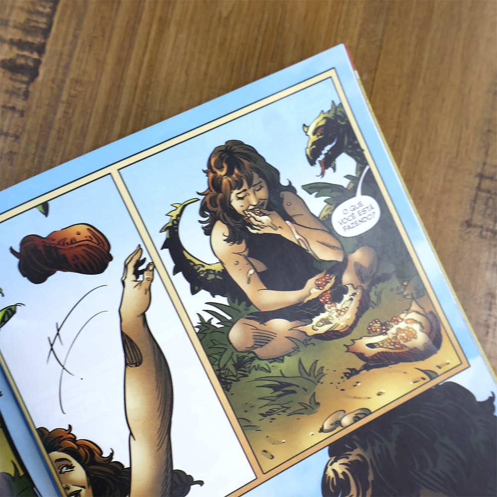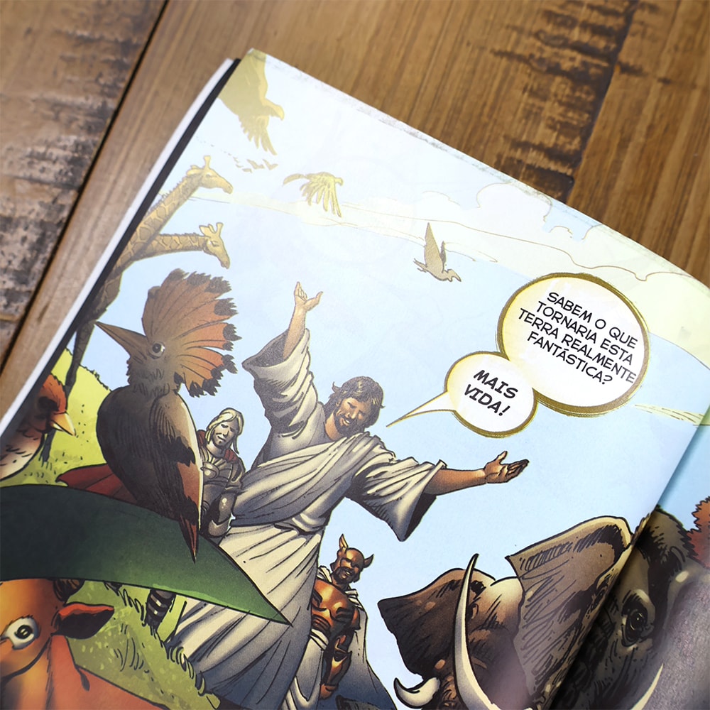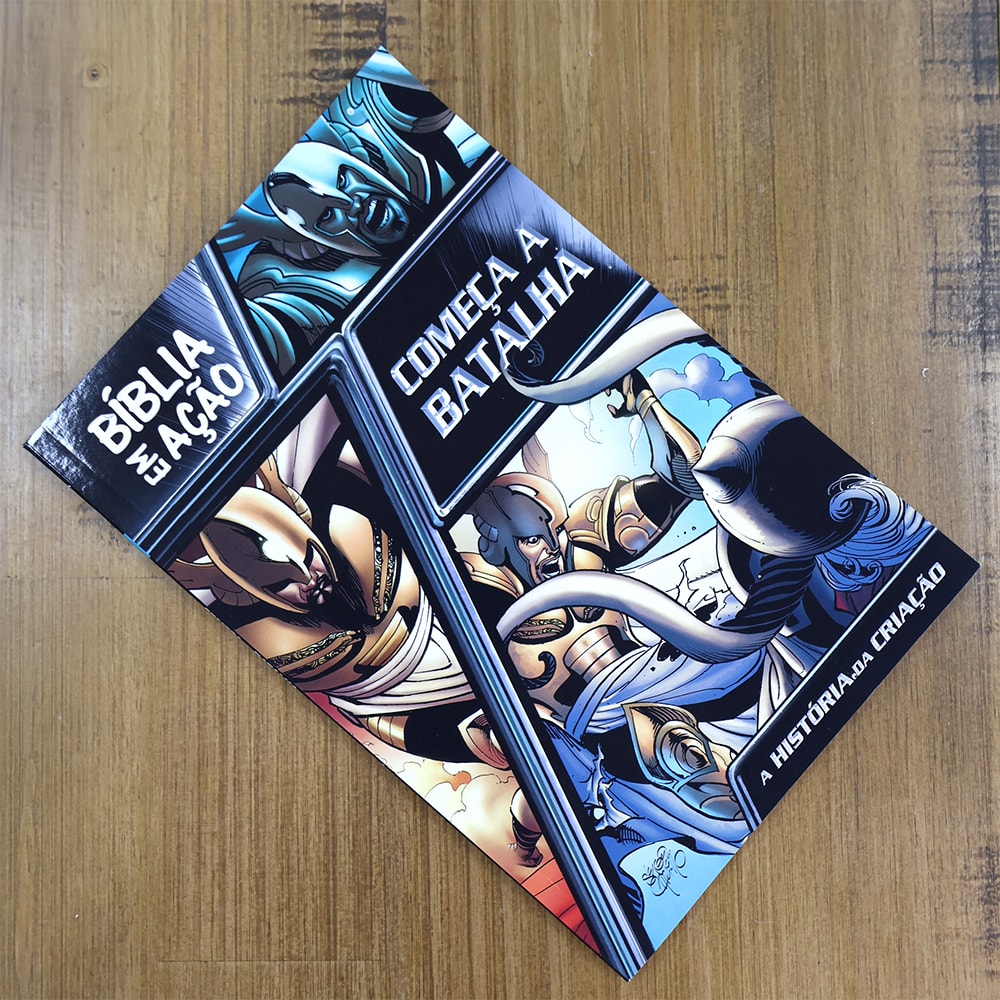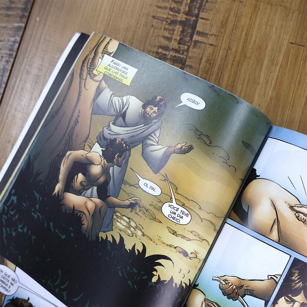 Esse livro da Linha em Ação conta sobre a criação, a história de Adão e Eva e a armadilha de Lúcifer de uma maneira totalmente interativa. Completamente no estilo HQ em suas mais de 100 páginas de muita ação, tornando ainda mais divertido conhecer as aventuras das Sagradas Escrituras.