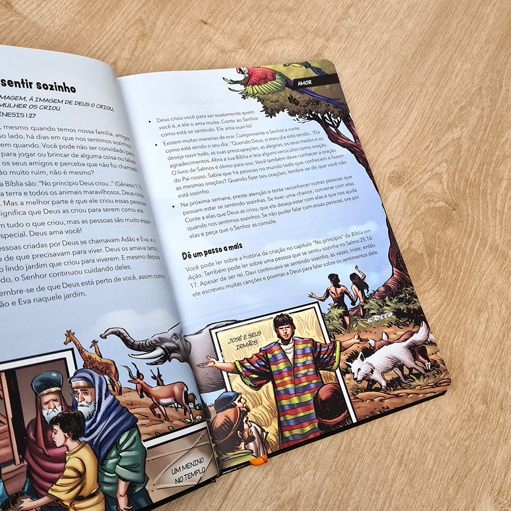 Cada devocional tem imagens incríveis em estilo moderno e atual de comics. Seus filhos vão adorar! E eles também irão: