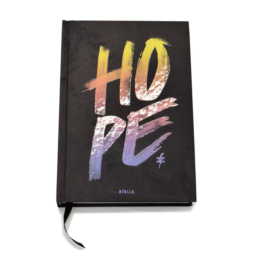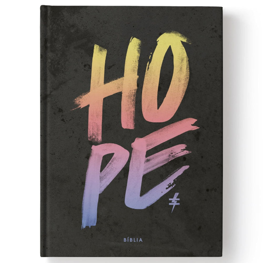 Bíblia Hope traz em sua bela capa ilustrada, acabamento com toque acetinado e verniz, representando a esperança que sai pra dançar nas ruas, colorindo e dando vida a sonhos, metas, ideais, realizações. Não há desanimo ou impossibilidades que possam apagar a esperança ancorada na fé e fundamentada em amor.