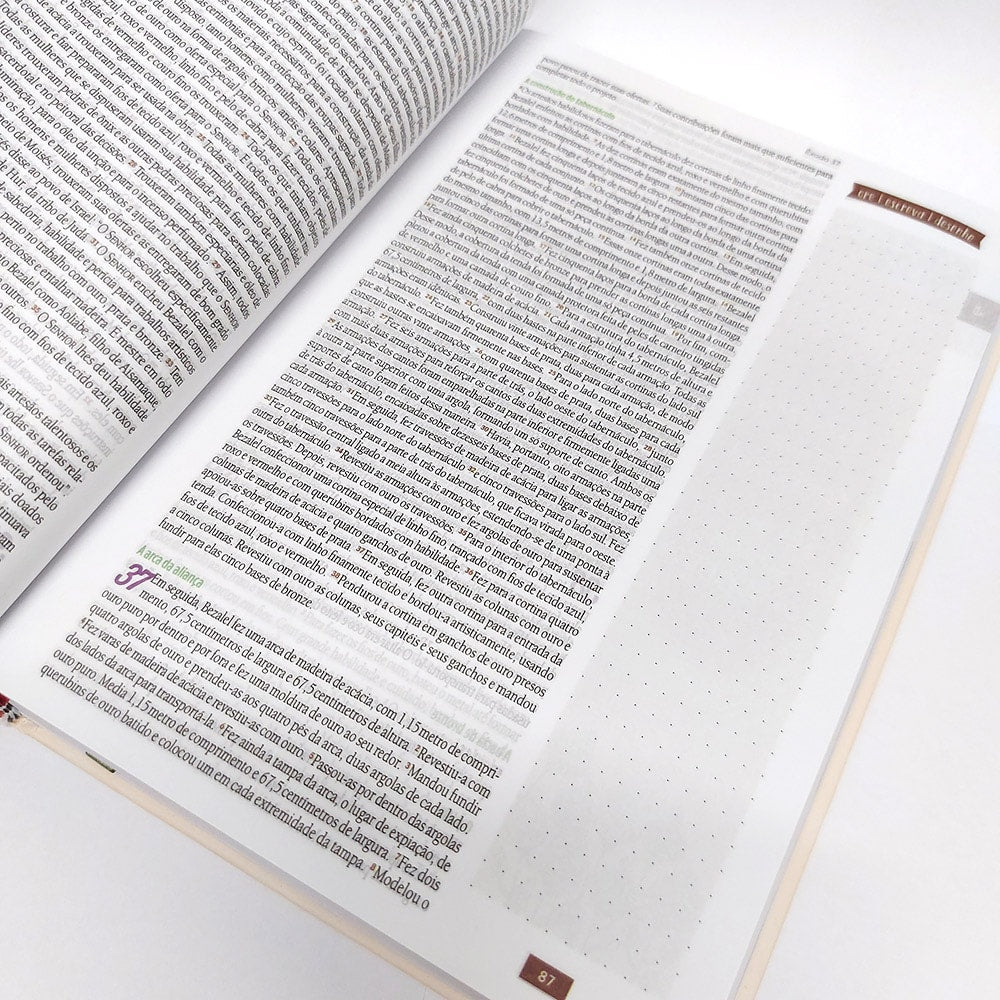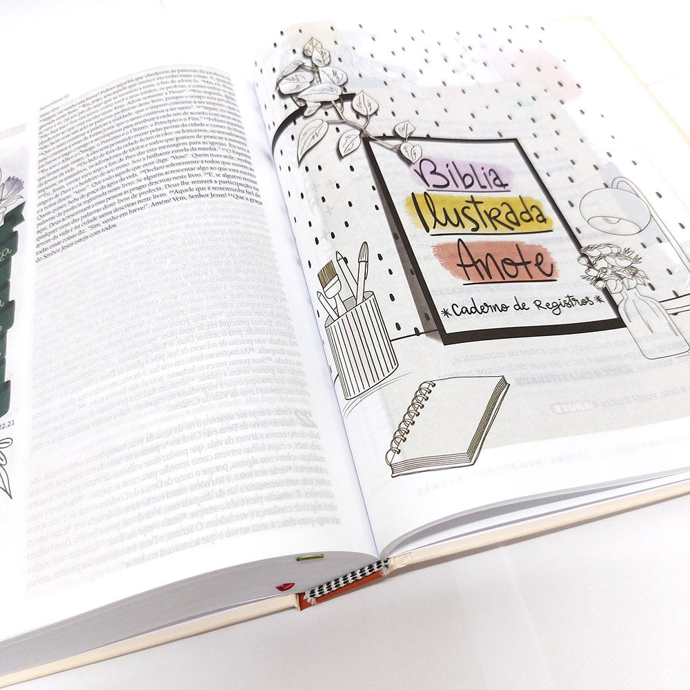 A Bíblia Ilustrada Anote vem com diferencial em ter além do espaço para anotações ela já vem com algumas ilustrações onde você irá colorir e aprender a desenvolver toda a sua criatividade em sua bíblia. Ela é tão completa que serve para todo mundo, você que gosta somente das anotações pois já vem com as ilustrações e também para quem gosta de fazer seus próprios desenhos. Lançada em 2021 a Bíblia Ilustrada Anote chega com tudo na versão NVT (Nova Versão Transformadora) e novas capas, com uma letra super confortável, com capa dura e desenhos incrivelmente lindos, em suas últimas páginas, você irá encontrar o caderno de registro que serve para você que gosta de soltar suas artes na bíblia, contém: