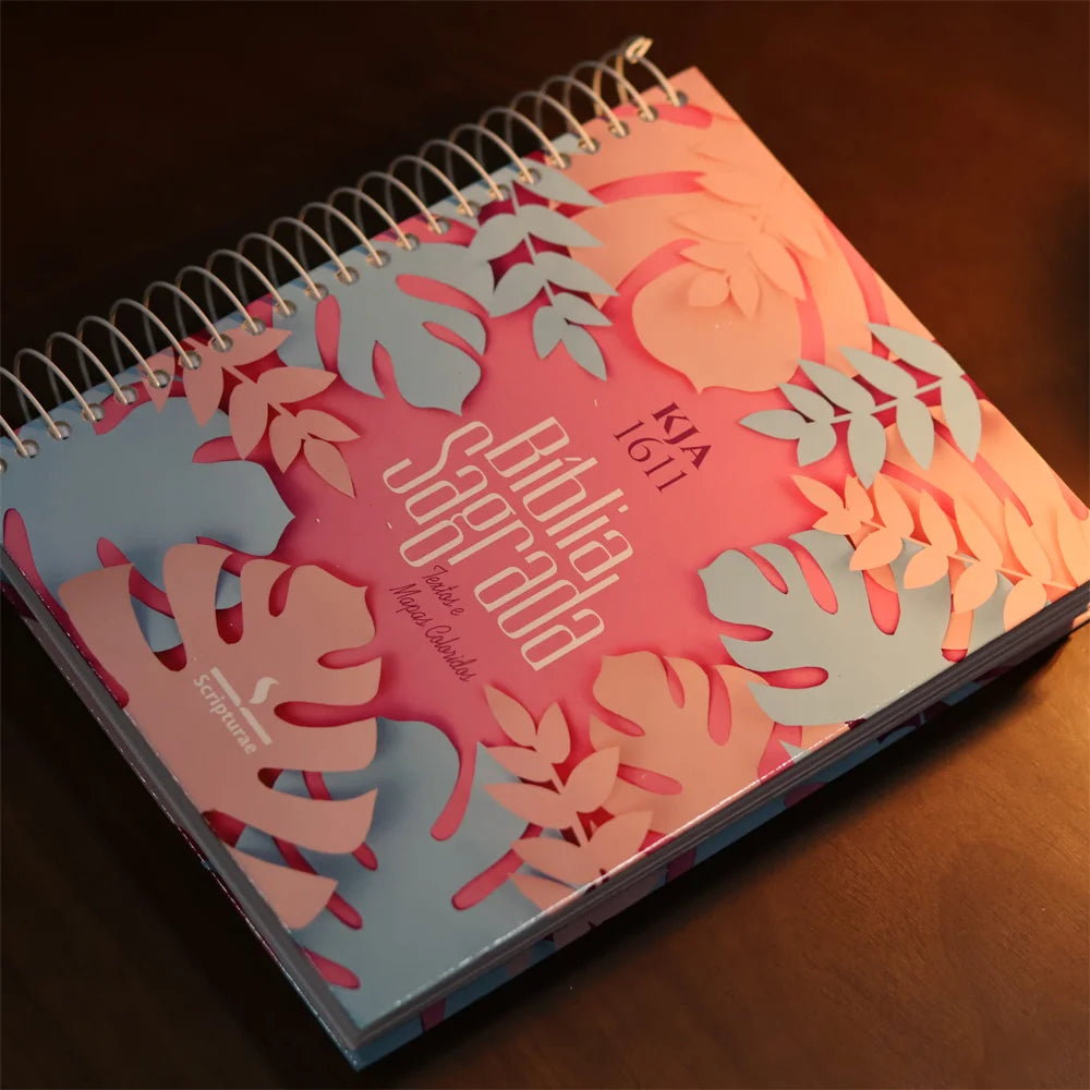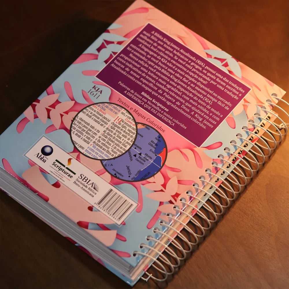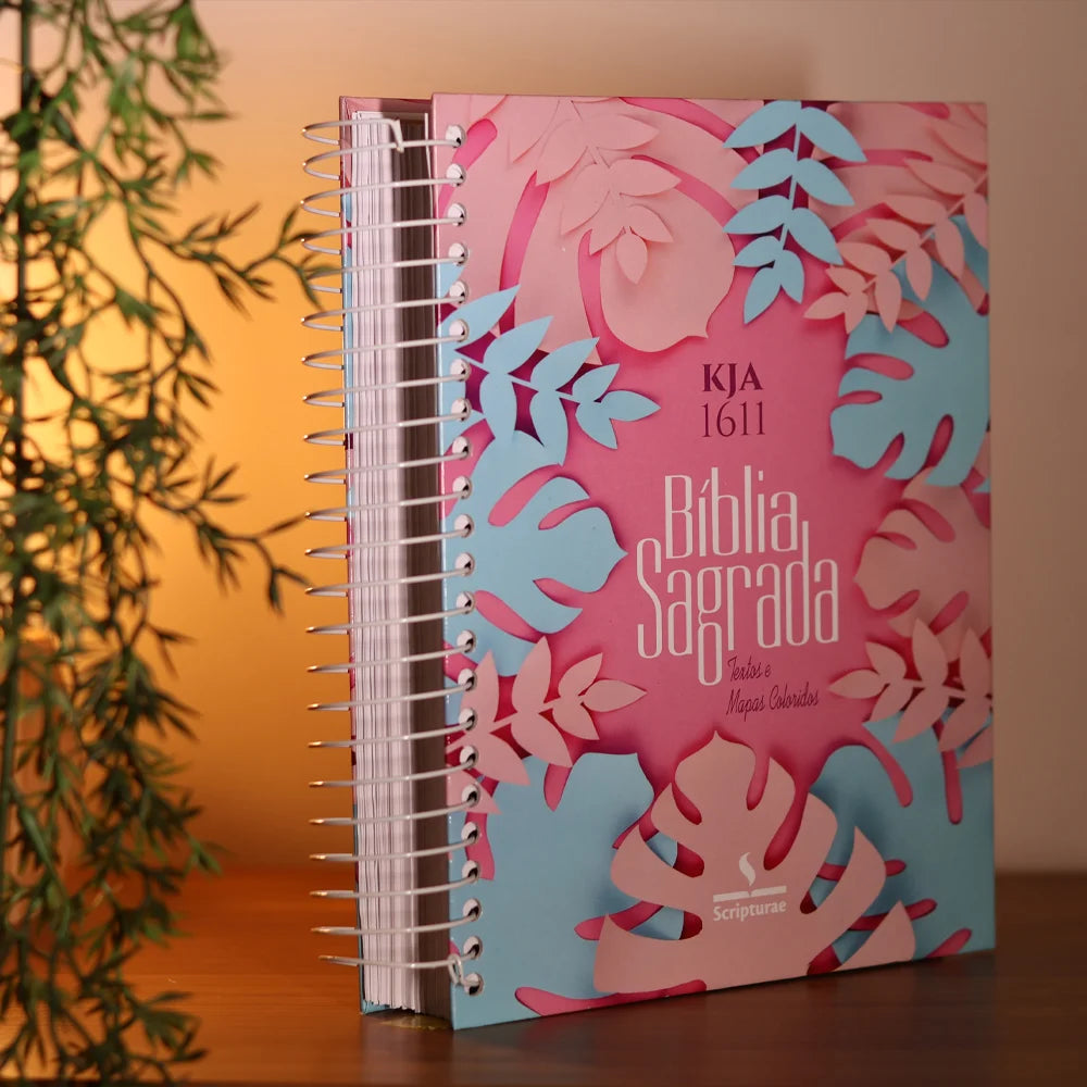 Bíblia King James 1611 Folhas | Textos e Mapas Coloridos | Espiral