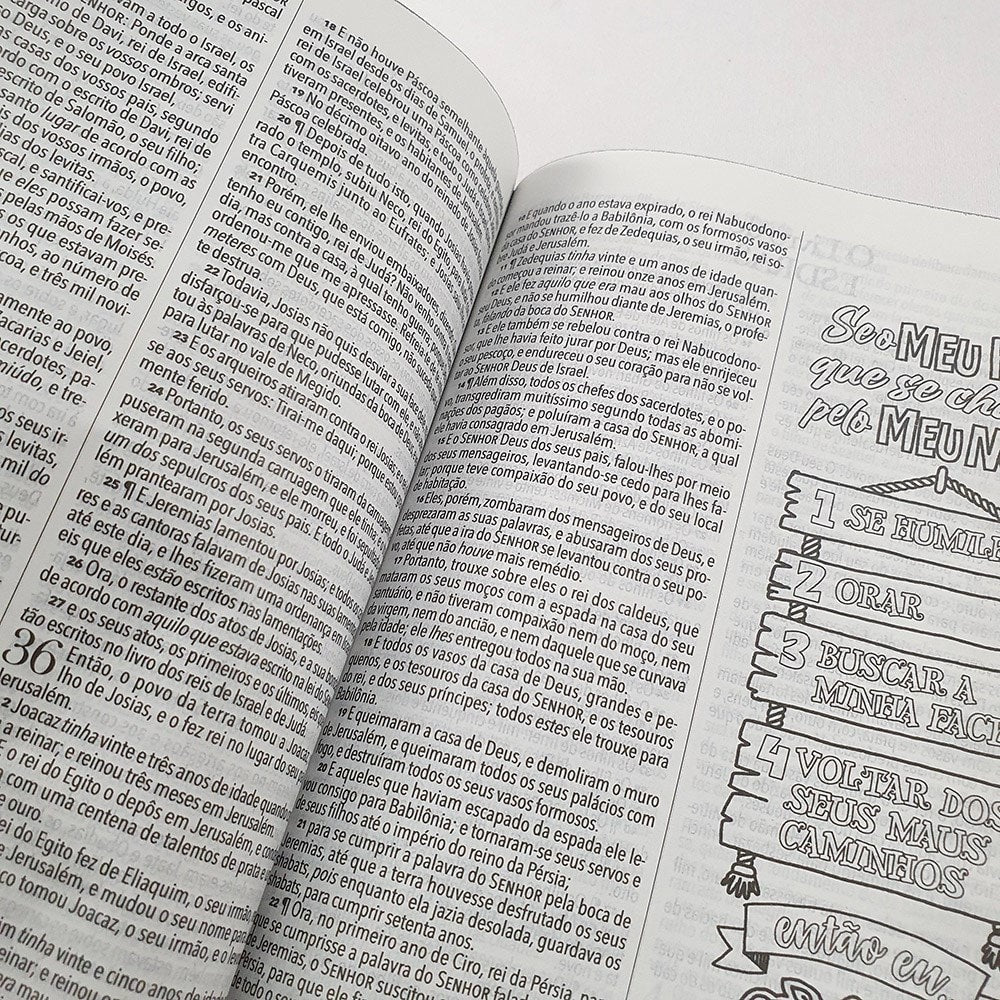 Conheça o mais novo laçanmento BKJ 1611 Ultra Fina: Bíblia King James 1611 Lettering Bible, com o intuito de estimular a criação de desenhos de letras dos versículos da Bíblia de uma forma artística e criativa. Esse conceito nasceu nos Estados Unidos onde os leitores da Bíblia expressam sua arte através de versículos e desenhos feitos à mão, os famoso bíblia journaling, e narram as mais conhecidas histórias Bíblicas.
