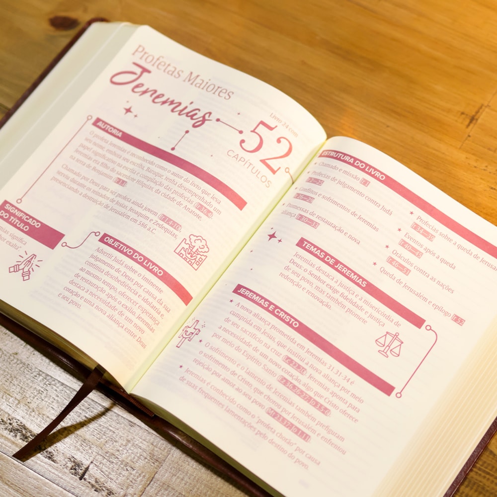 Perfeita para devocionais diários, estudos em grupo ou momentos de conexão espiritual, essa Bíblia ajuda a transformar sua leitura em uma jornada enriquecedora e única. Ideal para cristãos que valorizam o aprendizado contínuo e a aplicação prática da Palavra.